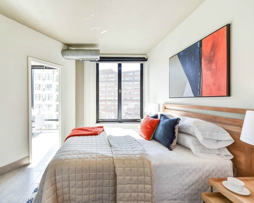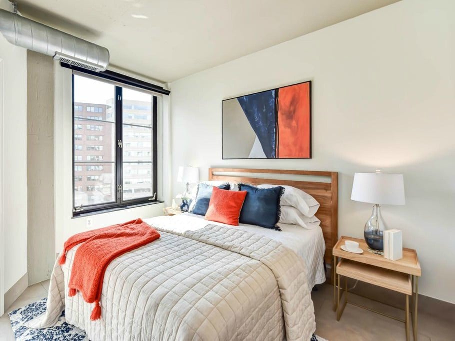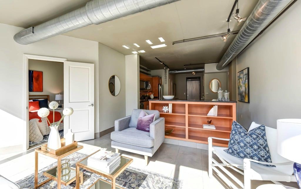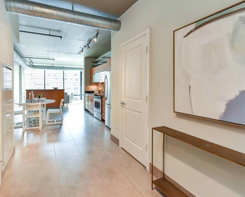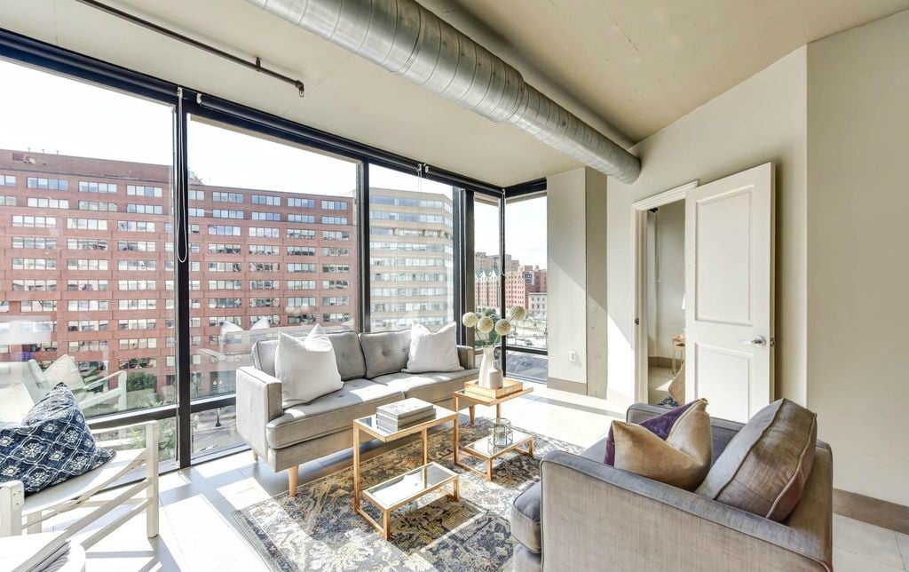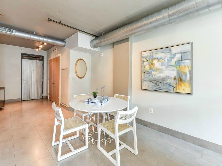 True two bedroom, two bathroom, corner unit on 6th floor. Needs some work. Features include gourmet kitchen with granite counters, stainless steel appliances and large bedrooms with large walk-in closets. Large windows facing north street. Full service building offers front desk, fitness room, community room, shared outdoor space and garage parking included.