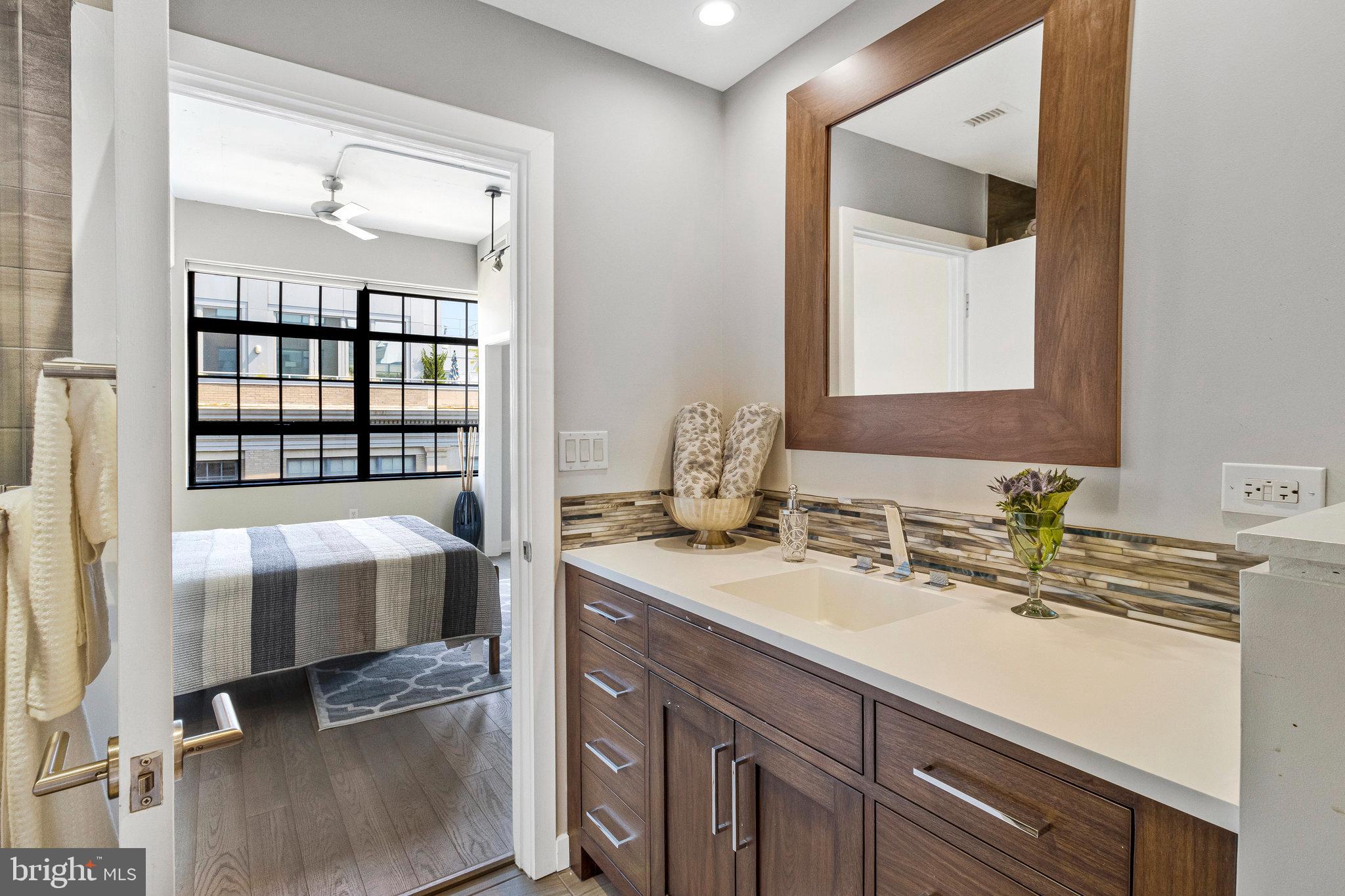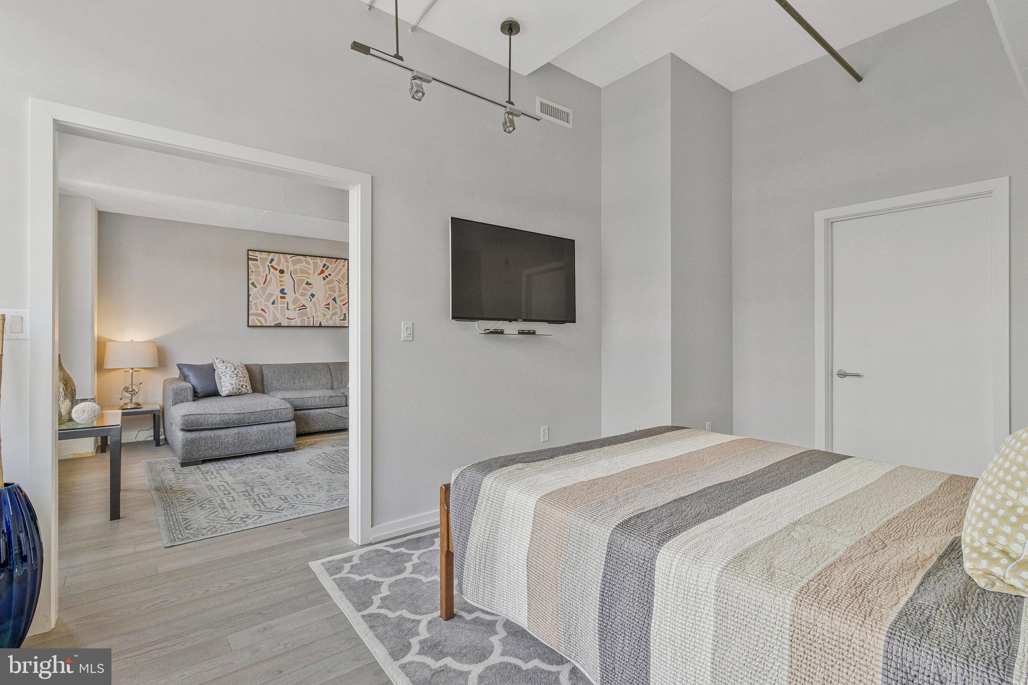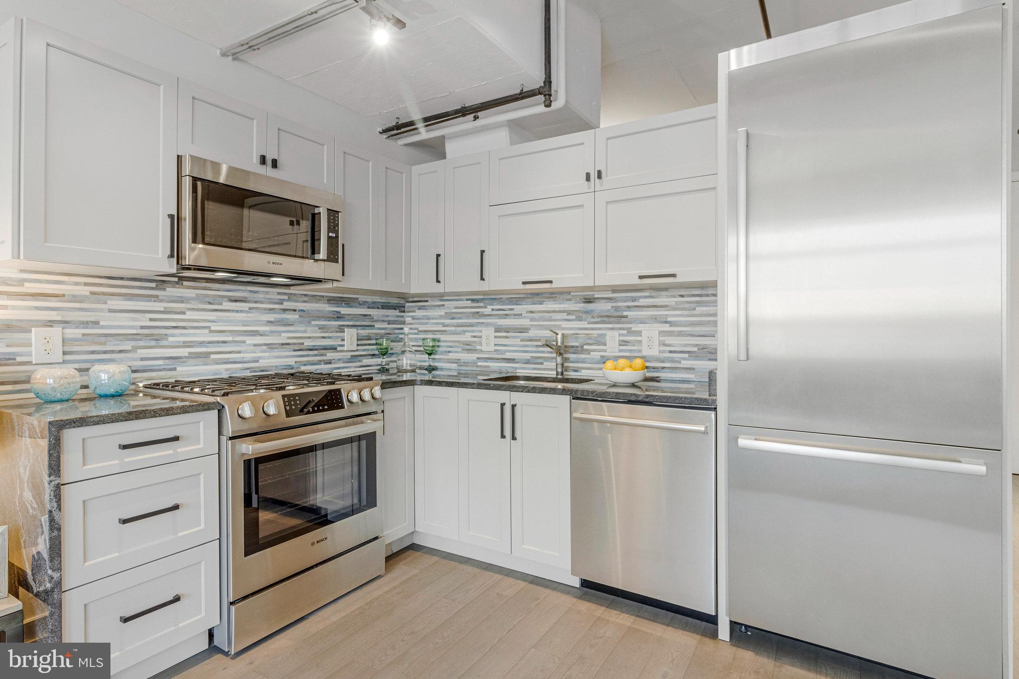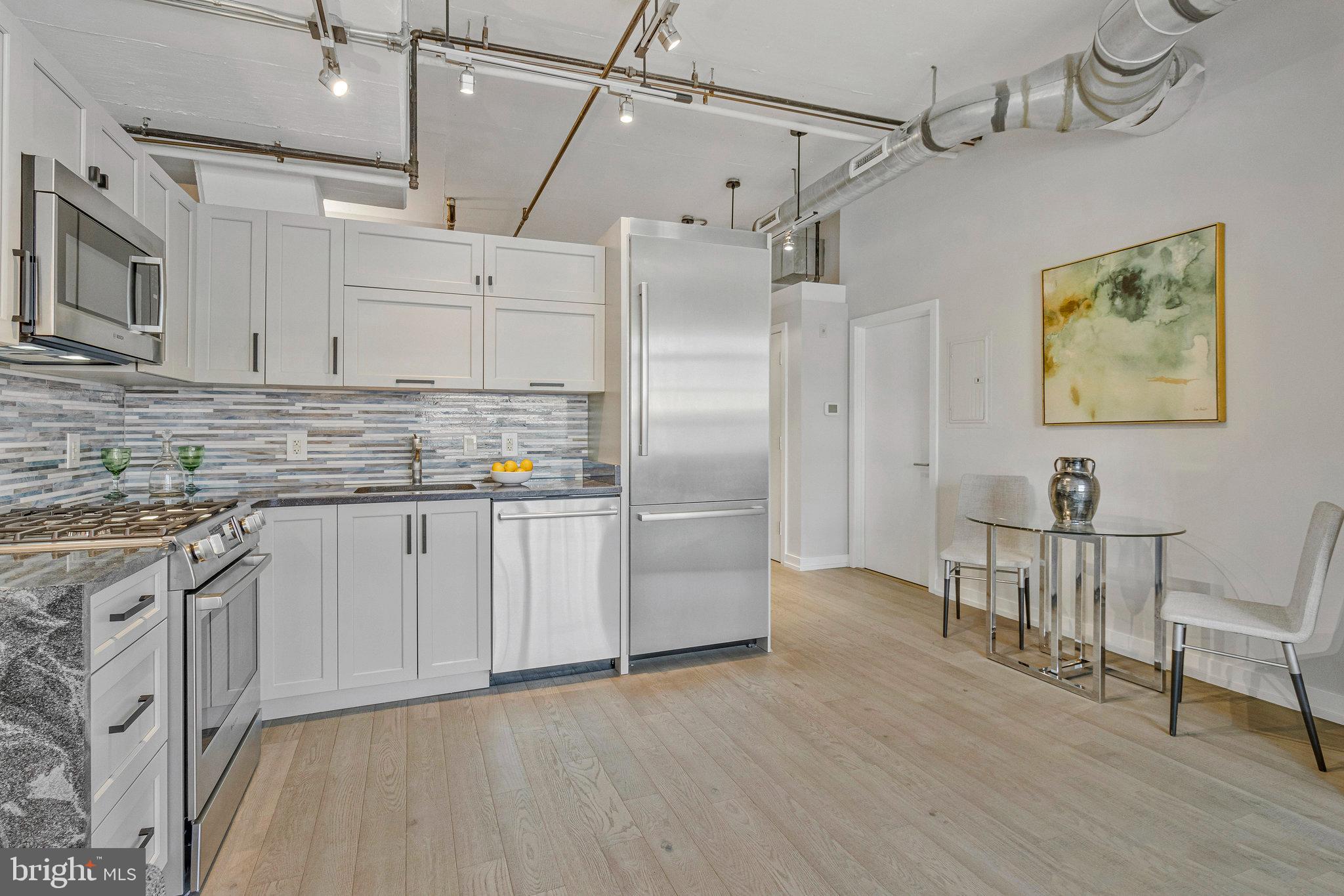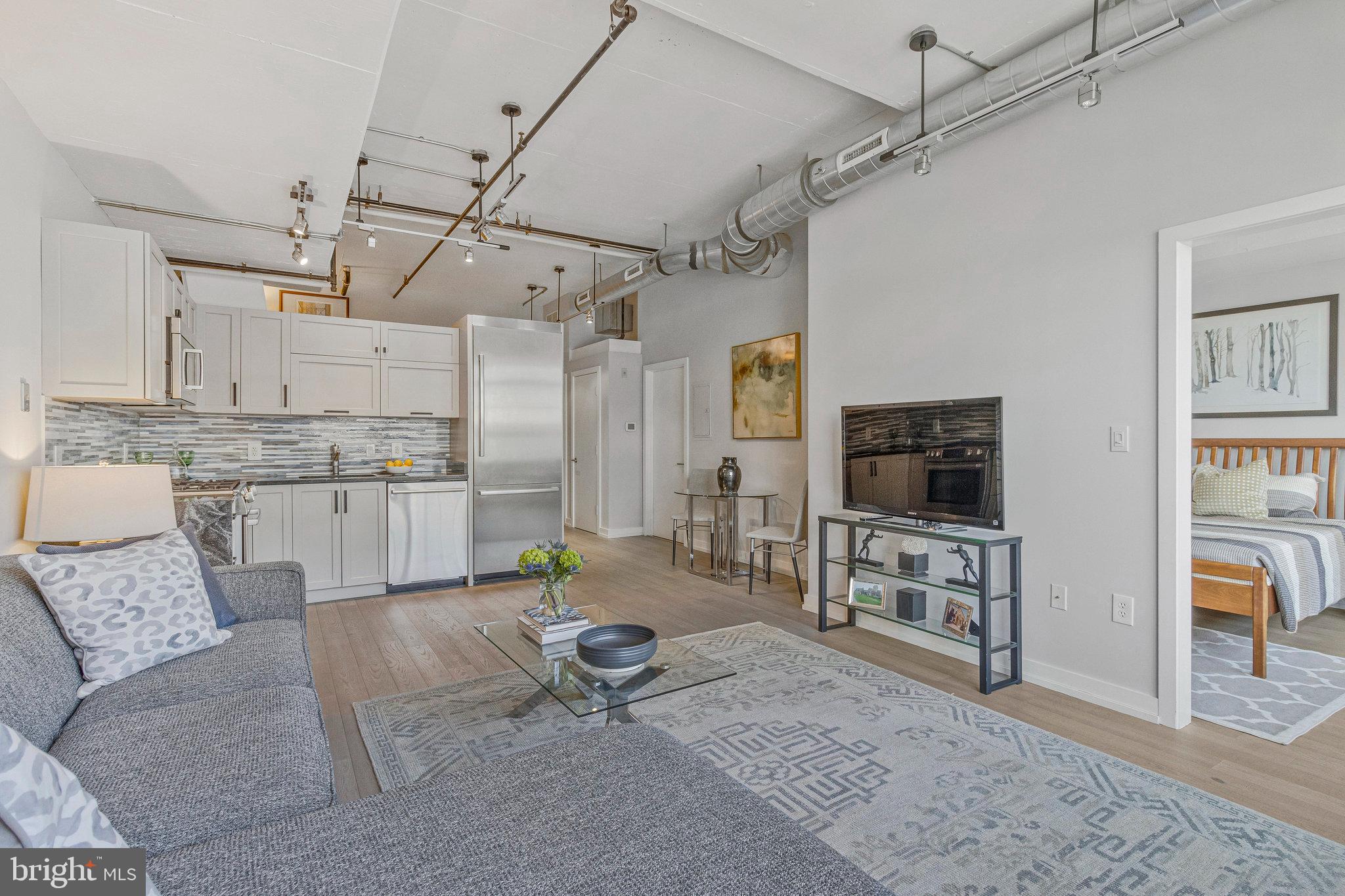 Sophisticated, spacious, and stylishly updated throughout, this dynamic Lofts14 II one-bedroom plus den will check off every box on your wishlist! Soaring ten-foot ceilings, huge warehouse-style windows, and exposed ductwork lend the industrial vibe Church Street residences are known for, while warm gray-toned wood flooring, a beautifully redone kitchen with sleek appointments, and impressive lighting elements add current freshness and a welcoming air to the voluminous space. The tranquil bedroom is also very well proportioned and gives way to the large, fully renovated bathroom, offering an incredible spa-like feel. The fabulous walk-in closet has been smartly outfitted with an excellent organizational system and makes dressing a breeze. A flexible, lofted open-concept den space can serve double duty as a fantastic home office or even as an additional sleeping space. A washer and dryer are neatly tucked into a closet in the entry foyer. Additional features include garage parking, a private extra storage unit, and a communal roof terrace.