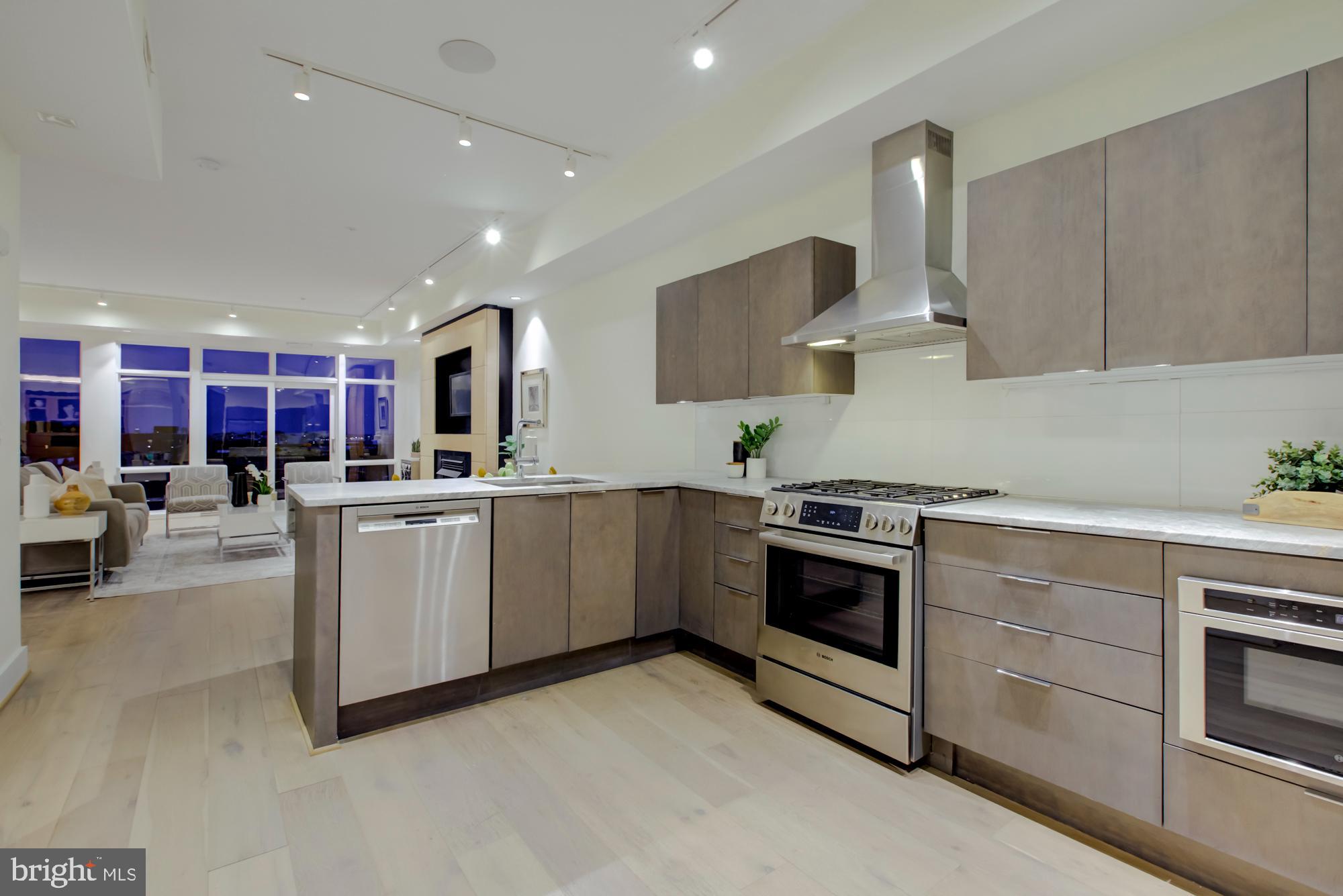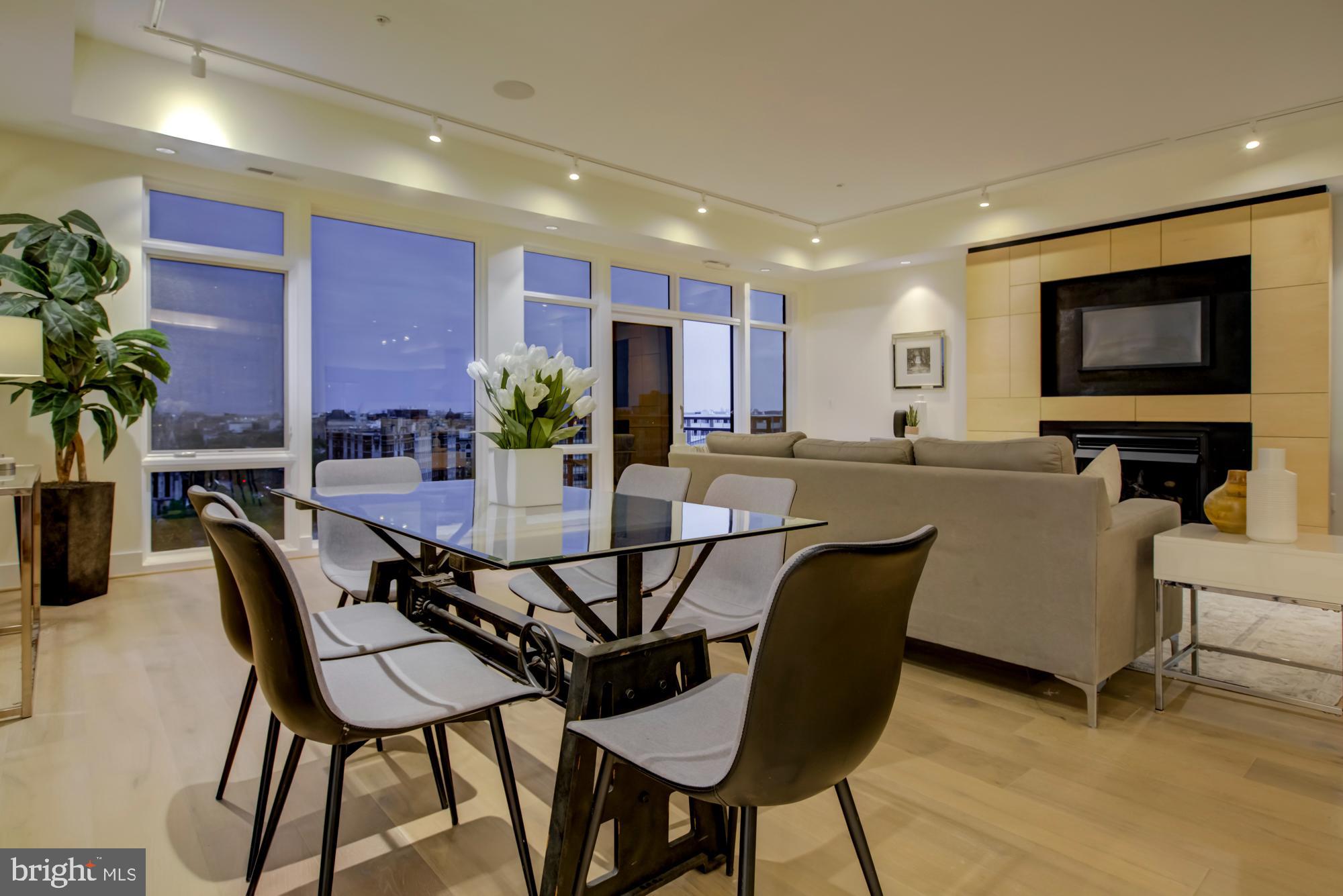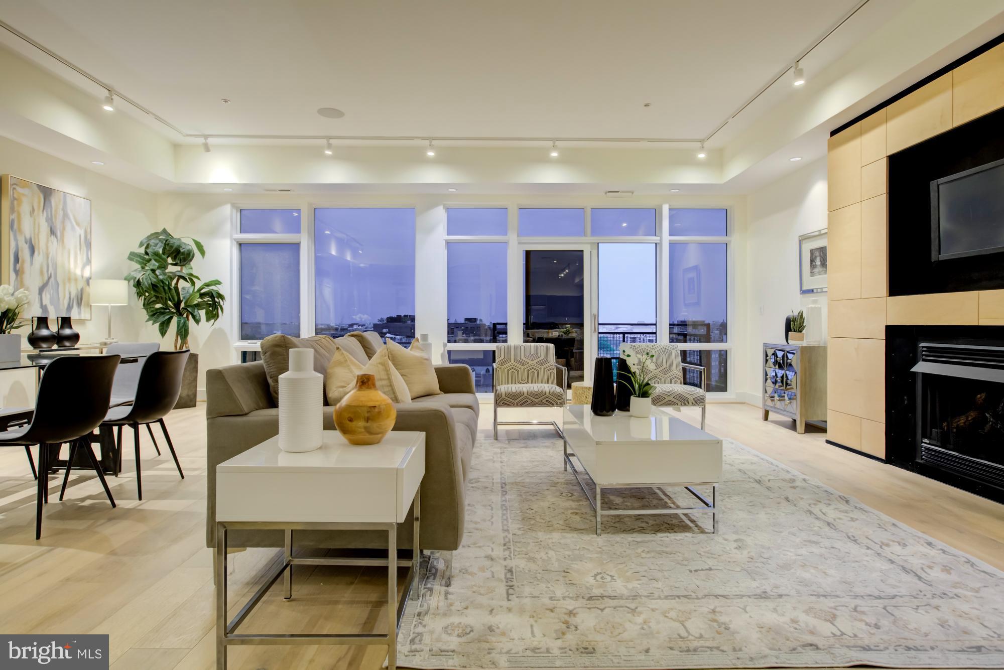 Penthouse 4 East offers approx. 2,200SF of living space with three bedrooms + den, three full bathrooms and a 12 x 22 private rooftop terrace. The main living and entertaining area has floor-to-ceiling windows with 180 degree views encompassing Maryland, DC (the Capitol, Washington Monument and endless city views), and all the way to Bailey's Crossroads in Virginia. We challenge you to find a better view!! This spectacular residence also features a gas fireplace in the living room and, in the master bedroom a custom-designed headboard with built-in storage and a spa-like bathroom. Plus, custom marble counters in the kitchen with a nifty removable table/workspace, engineered wide plank wood floors throughout, 9+ ft ceilings, and GARAGE PARKING included. Low condo fees. Liberate yourself from steps and maintenance!