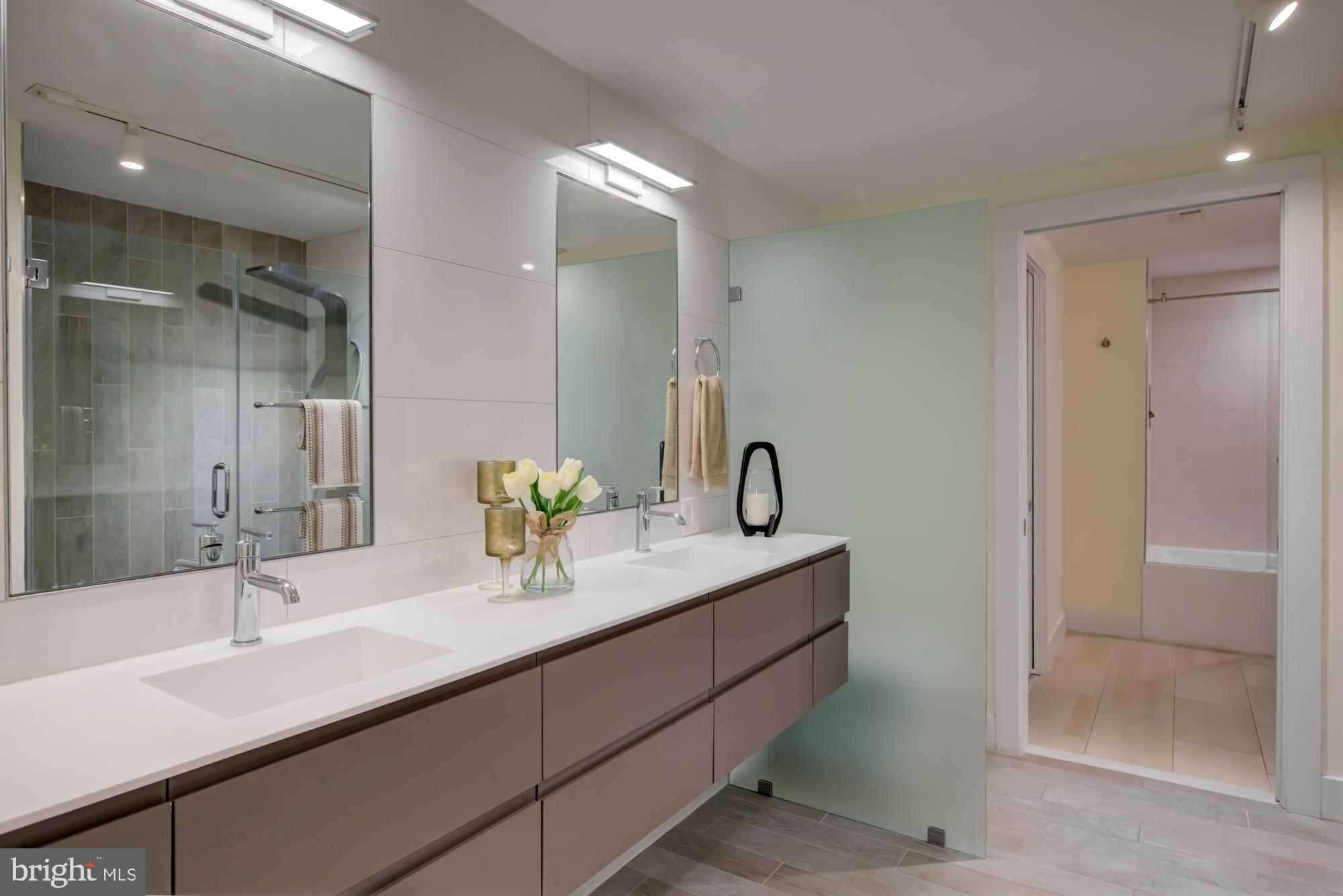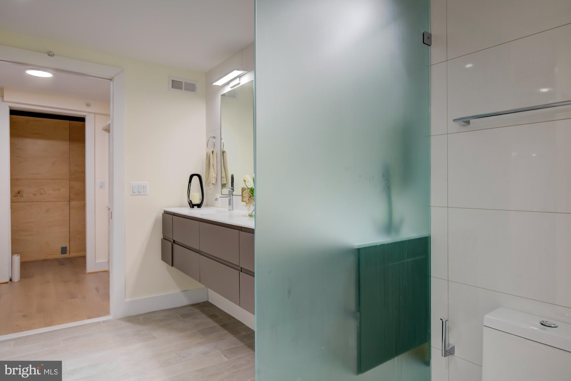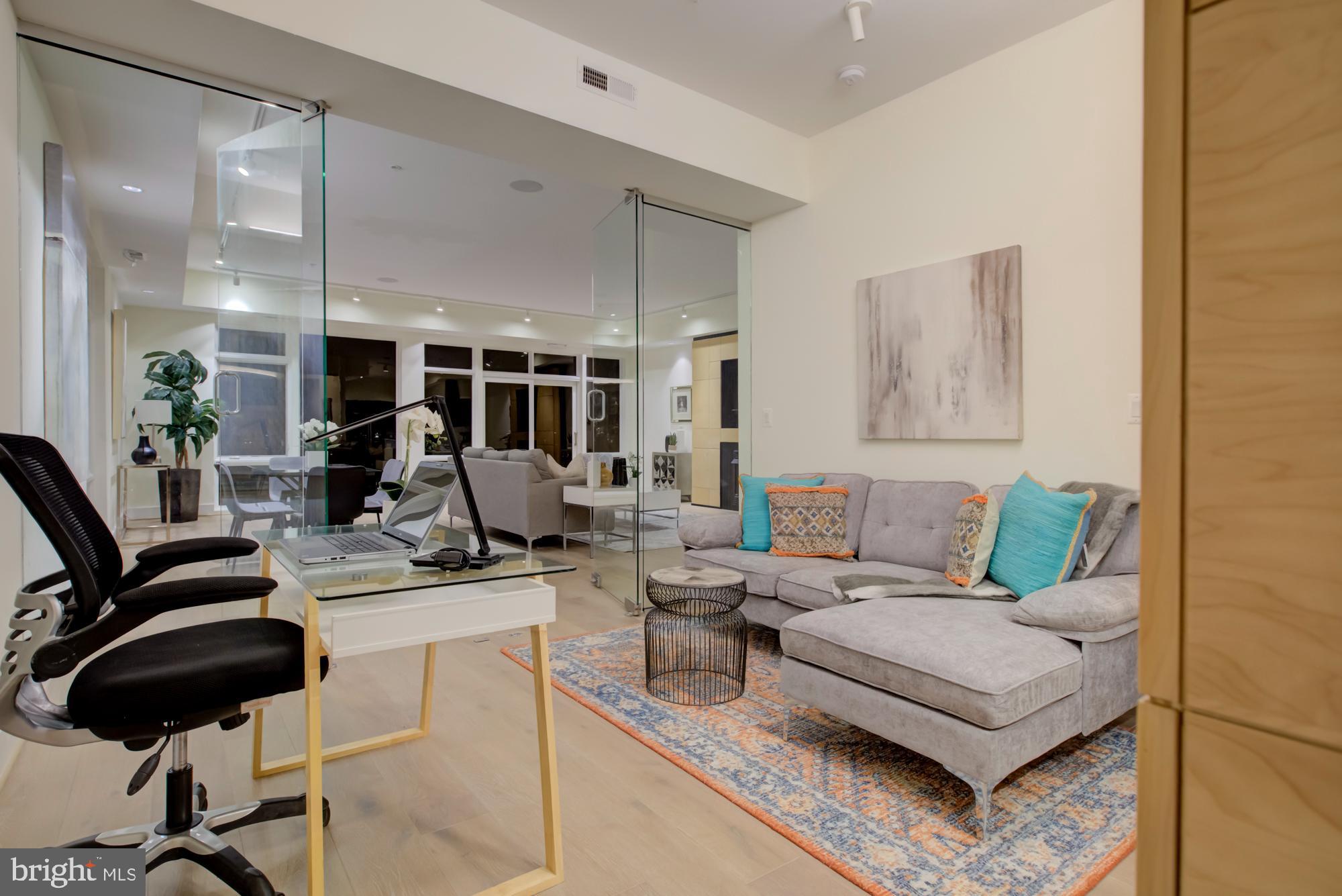 Penthouse 4 East offers approx. 2,200SF of living space with three bedrooms + den, three full bathrooms and a 12 x 22 private rooftop terrace. The main living and entertaining area has floor-to-ceiling windows with 180 degree views encompassing Maryland, DC (the Capitol, Washington Monument and endless city views), and all the way to Bailey's Crossroads in Virginia. We challenge you to find a better view!! This spectacular residence also features a gas fireplace in the living room and, in the master bedroom a custom-designed headboard with built-in storage and a spa-like bathroom. Plus, custom marble counters in the kitchen with a nifty removable table/workspace, engineered wide plank wood floors throughout, 9+ ft ceilings, and GARAGE PARKING included. Low condo fees. Liberate yourself from steps and maintenance!