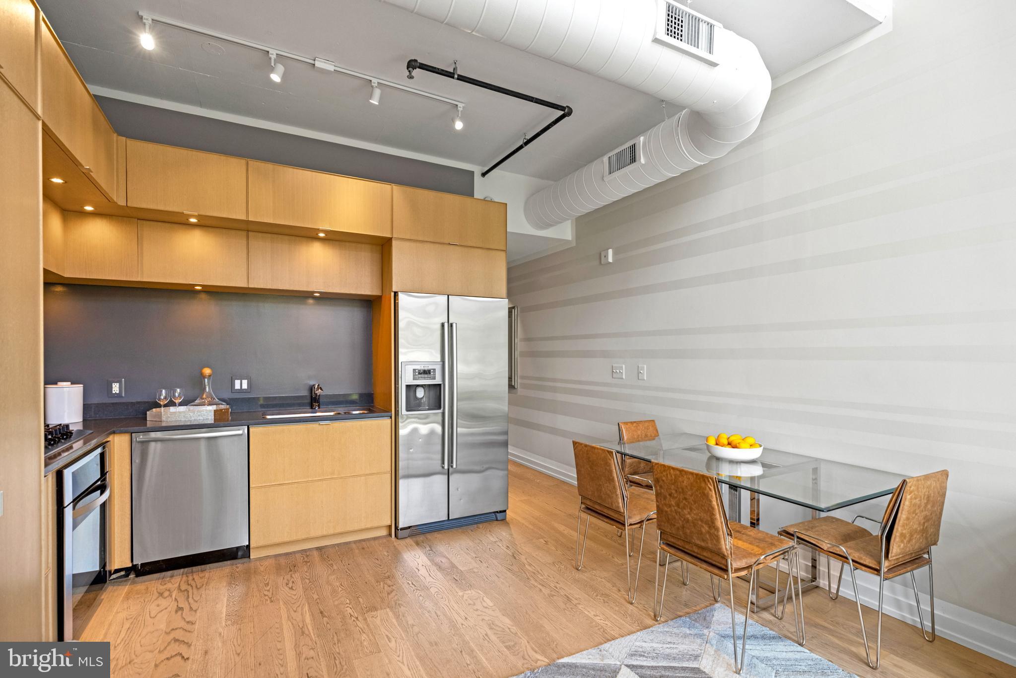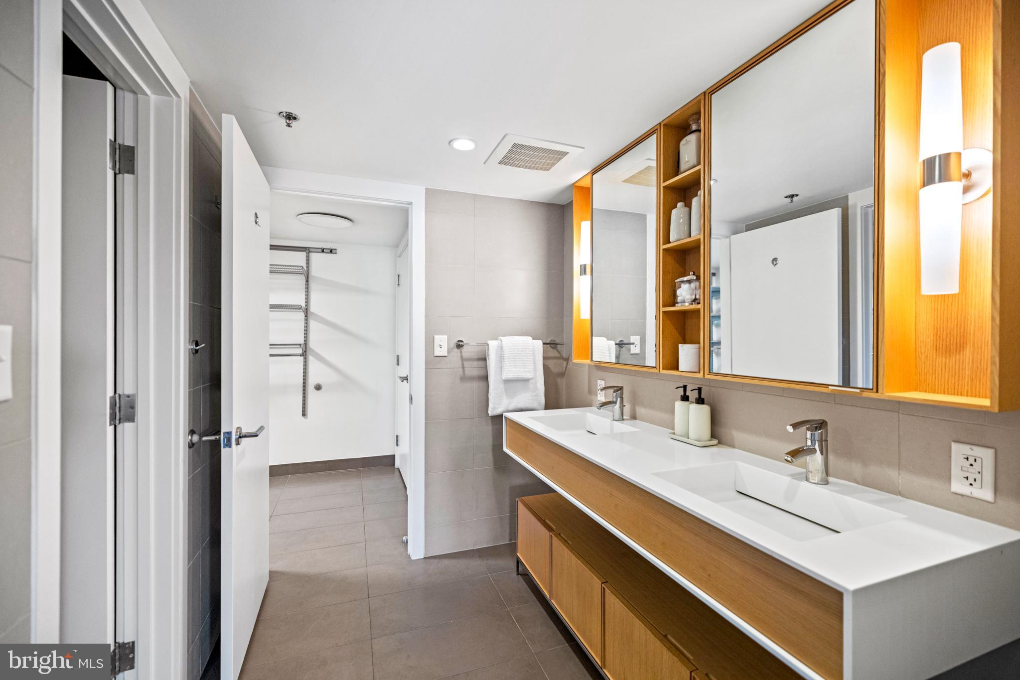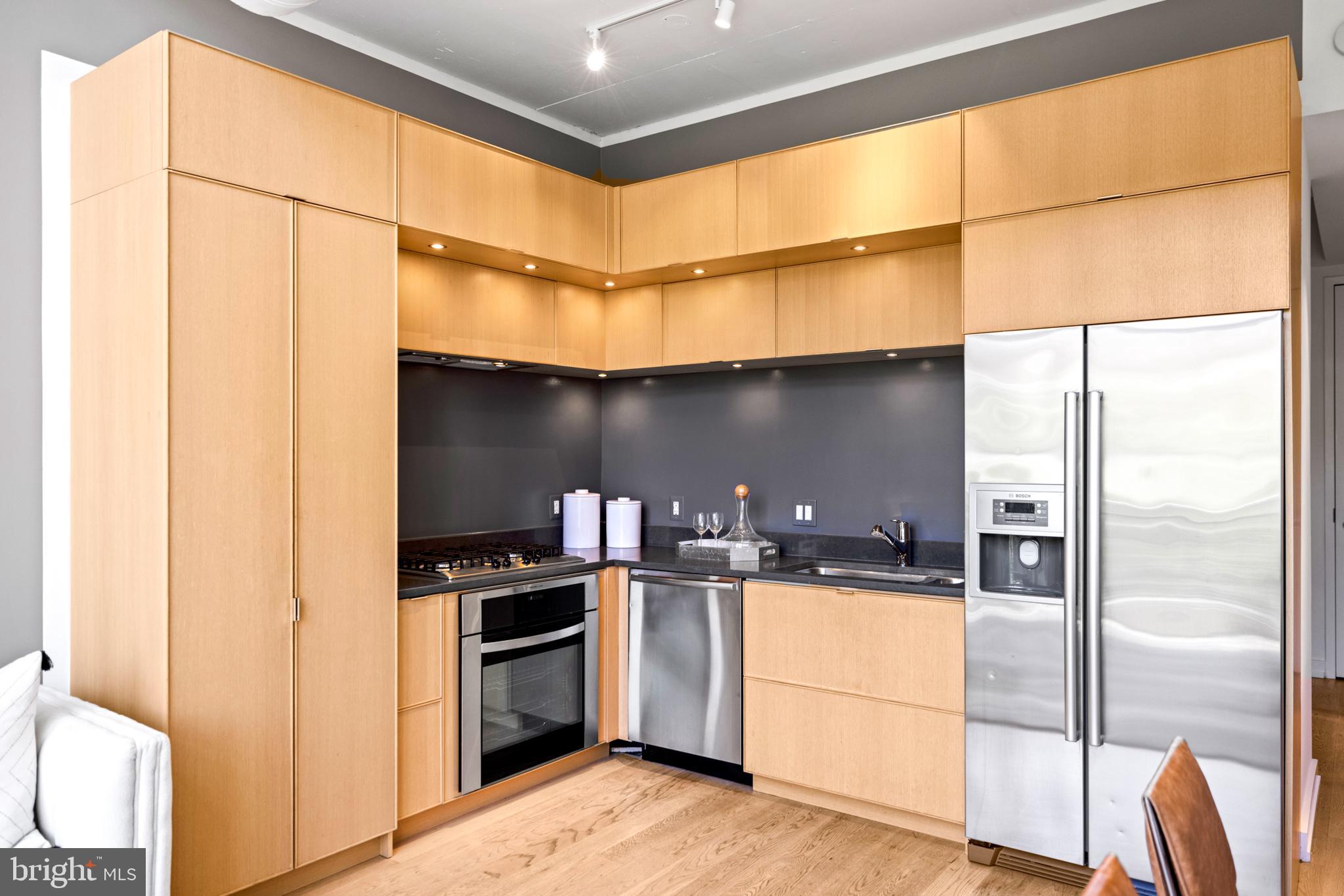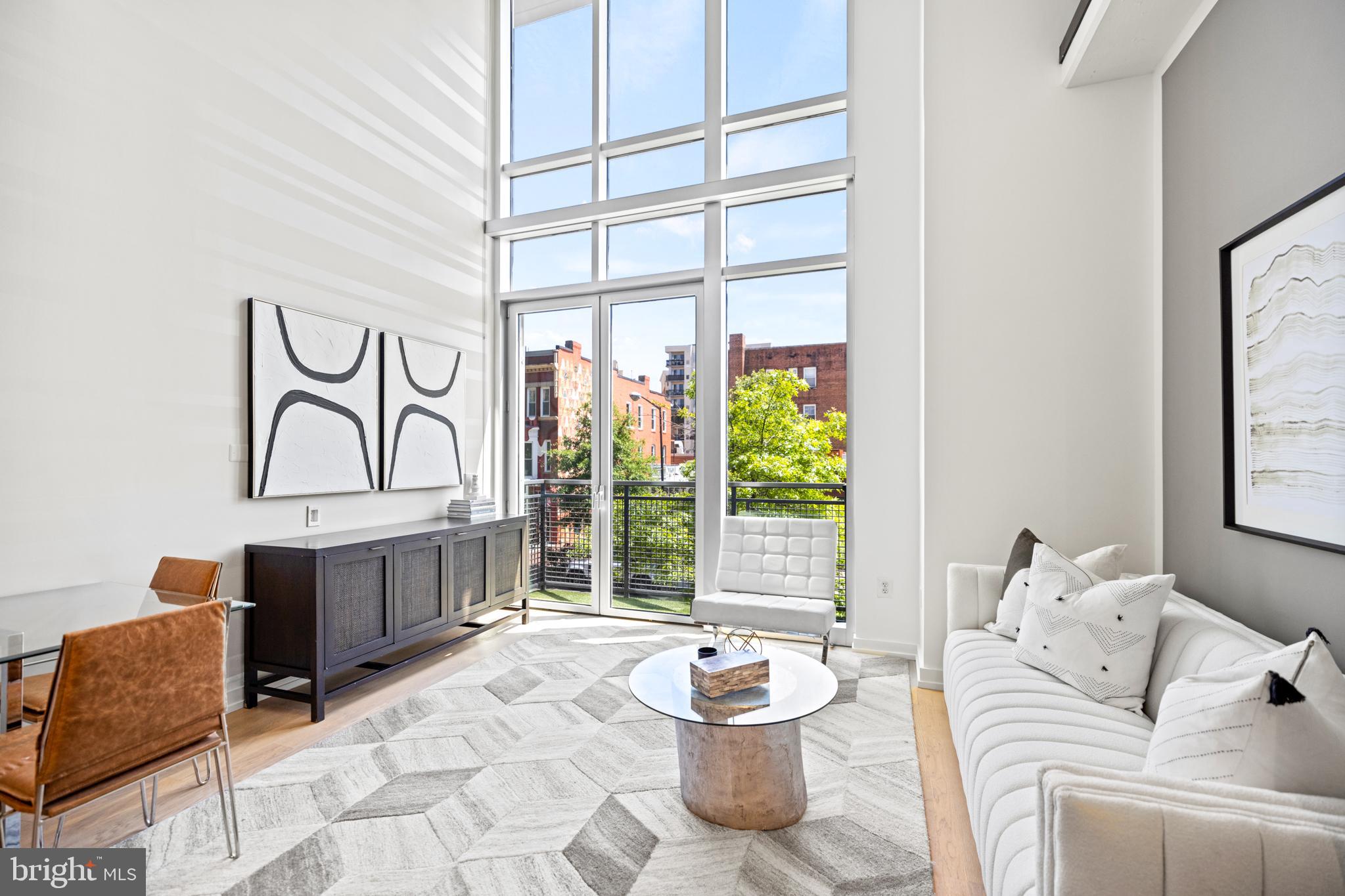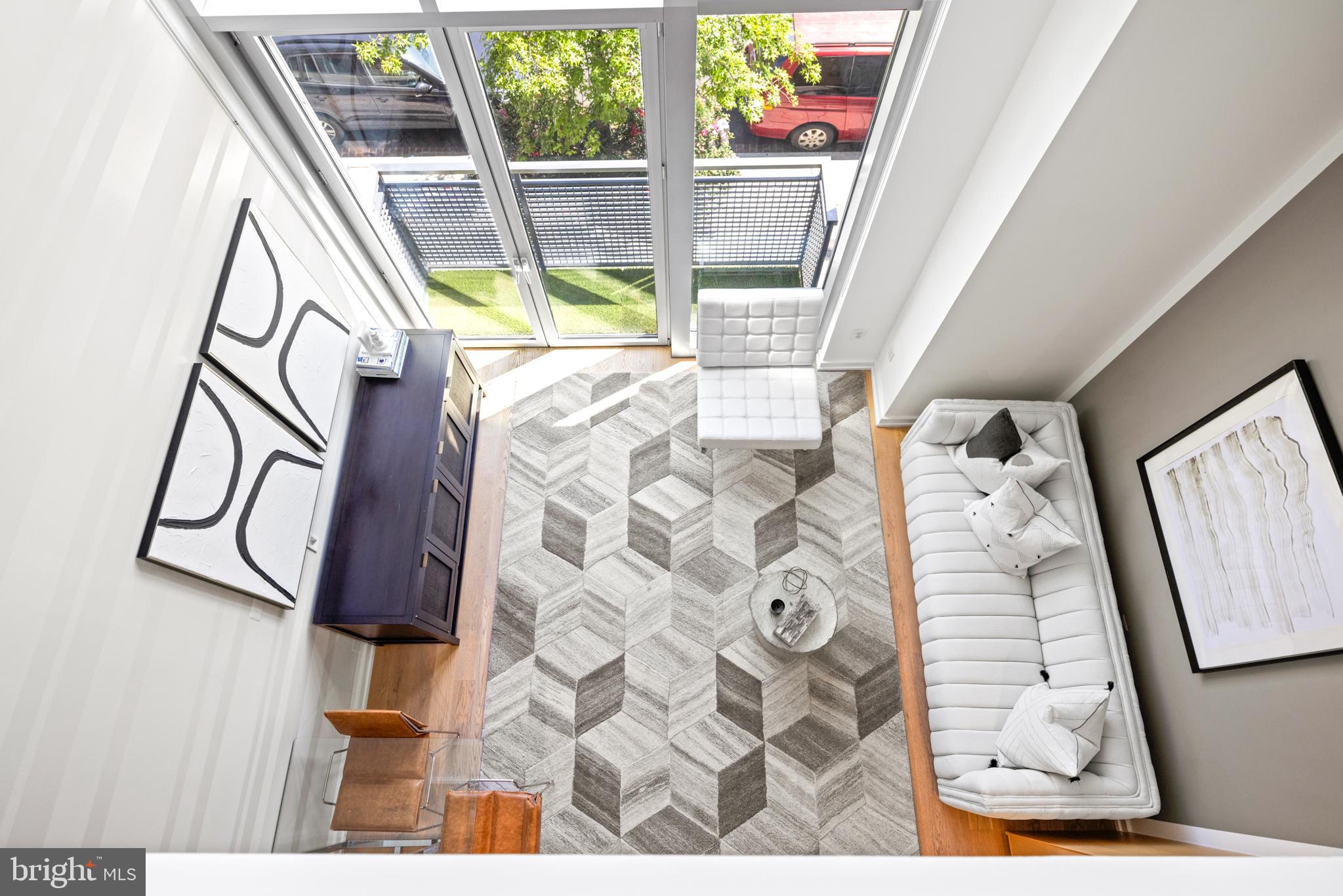 The Metropole | 2 Bed | 2.5 Bath | 1,350 Sf | 1 Juliet Balcony | 1 Garage EV Parking Space | Building: Full-Time Concierge, 2 Elevators, 2 Guest Bedrooms, 90 Residences, Built in 2008 | Unit: Open Main Living Layout, Vaulted Ceiling in Living Room, Exposed Ductwork & Concrete Ceilings, Track Lighting, Floor to Ceiling Windows, Custom Shades in Living Areas, Blackout Shades in Primary Suite, Large Walk-in Closets w/ Custom Storage Built-In, White Oak Hardwood Flooring, Full Size Bosch Washer & Dryer, Powder Bath on Main Level | Kitchen: Custom Oak Cabinetry w/ Under Cabinet Lighting, Quartz Countertops, Bosch Stainless Steel Appliances, French Door Refrigerator, Gas Range, Electrolux Oven, Full Size Dishwasher | Baths: Large Walk-in Glass Enclosed Shower & Double Vanity in Primary Bath, Mirrored Medicine Cabinets Throughout, Custom Vanities w/ Infinity Drain, Full Size Tub, Grohe Fixtures, Tile Walls & Flooring