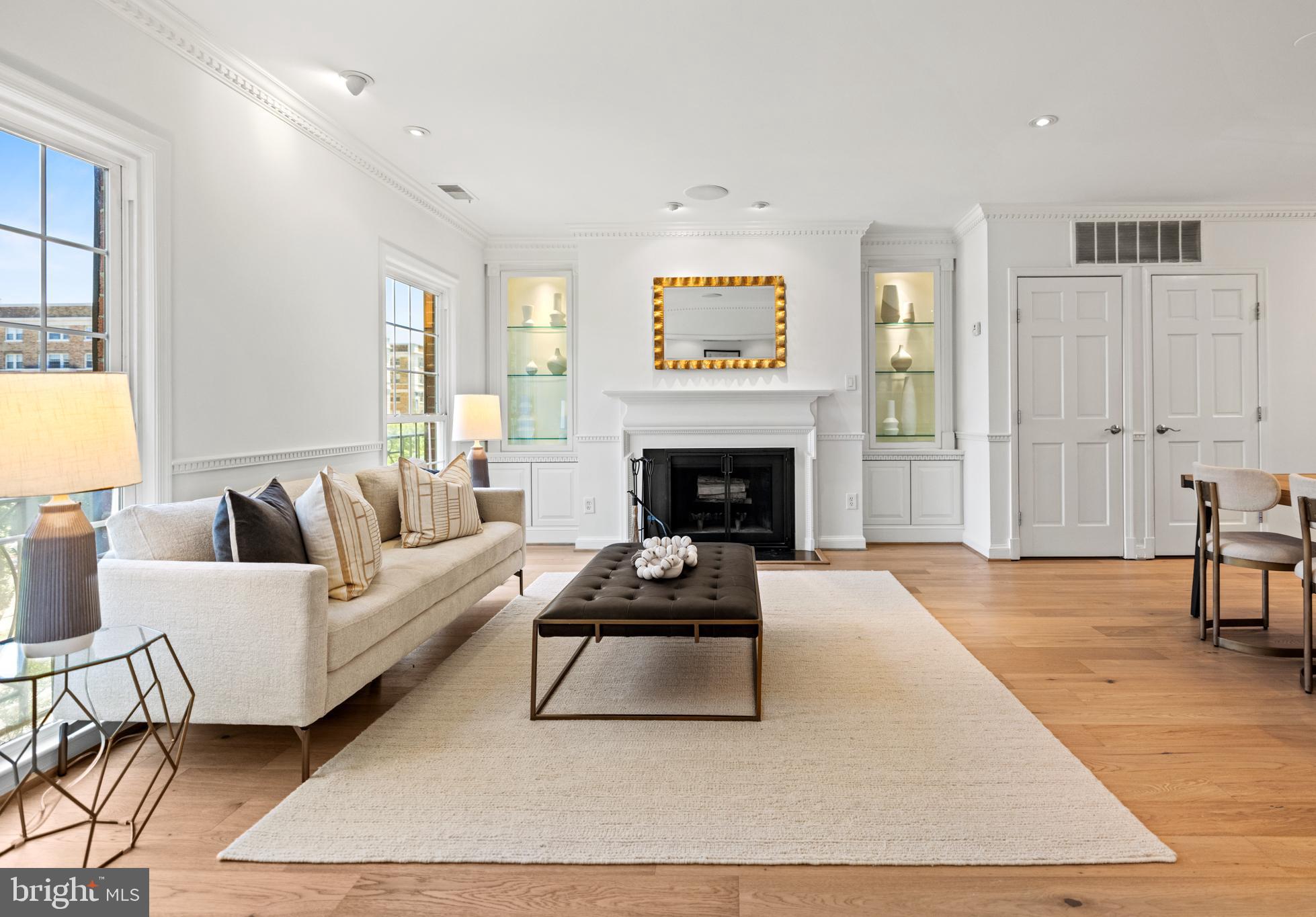 Largest Beekman Place Townhome | 3 Bed | 3 Bath | 1,675 Sf | 2 Parking Spaces | Beekman Place: Gated & Manned Community, Dog Park, Bike Storage | Home: Large Open Living Layout, Wood Burning Fireplace w/ Mantle & Custom Cabinetry, Ample Storage Throughout w/ Custom Built-Ins, Large Windows w/ Lots of Natural Light, Recessed Lighting & Crown Moldings, Built-In Sonos Audio System & Lutron Switches, New White Oak Hardwood Flooring Throughout, Full Size LG Front-Loading Washer & Dryer | Kitchen: Peninsula Island w/ Storage & Seating for 4, Ample Built-In Cabinetry, Quartz Countertops, Subway Tile Backsplash, Stainless Steel Appliances, Monogram Induction Cooktop, French Door Refrigerator w/ Water/Ice Dispenser, Miele Silent Dishwasher | Bath: Frameless Glass Enclosed Shower w/ Built-in Niche, Waterfall Shower Head & Separate Hand-held in Primary Suite, Marble Topped Vanities w/ Storage, Marble Tile Flooring Toto Toilets