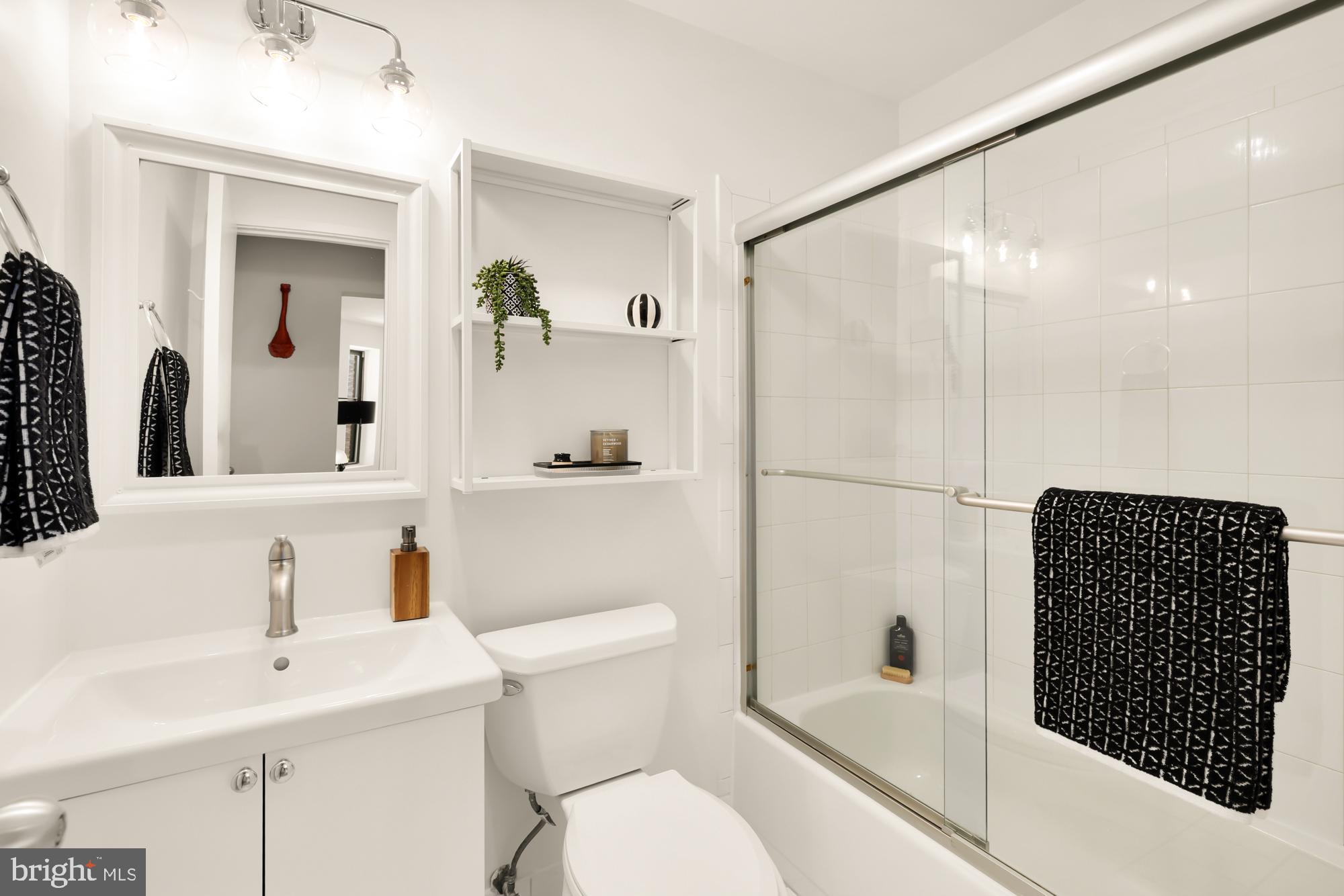 The bedroom serves as a peaceful retreat with generous closet space, while the bathroom is appointed with tasteful fixtures and finishes.