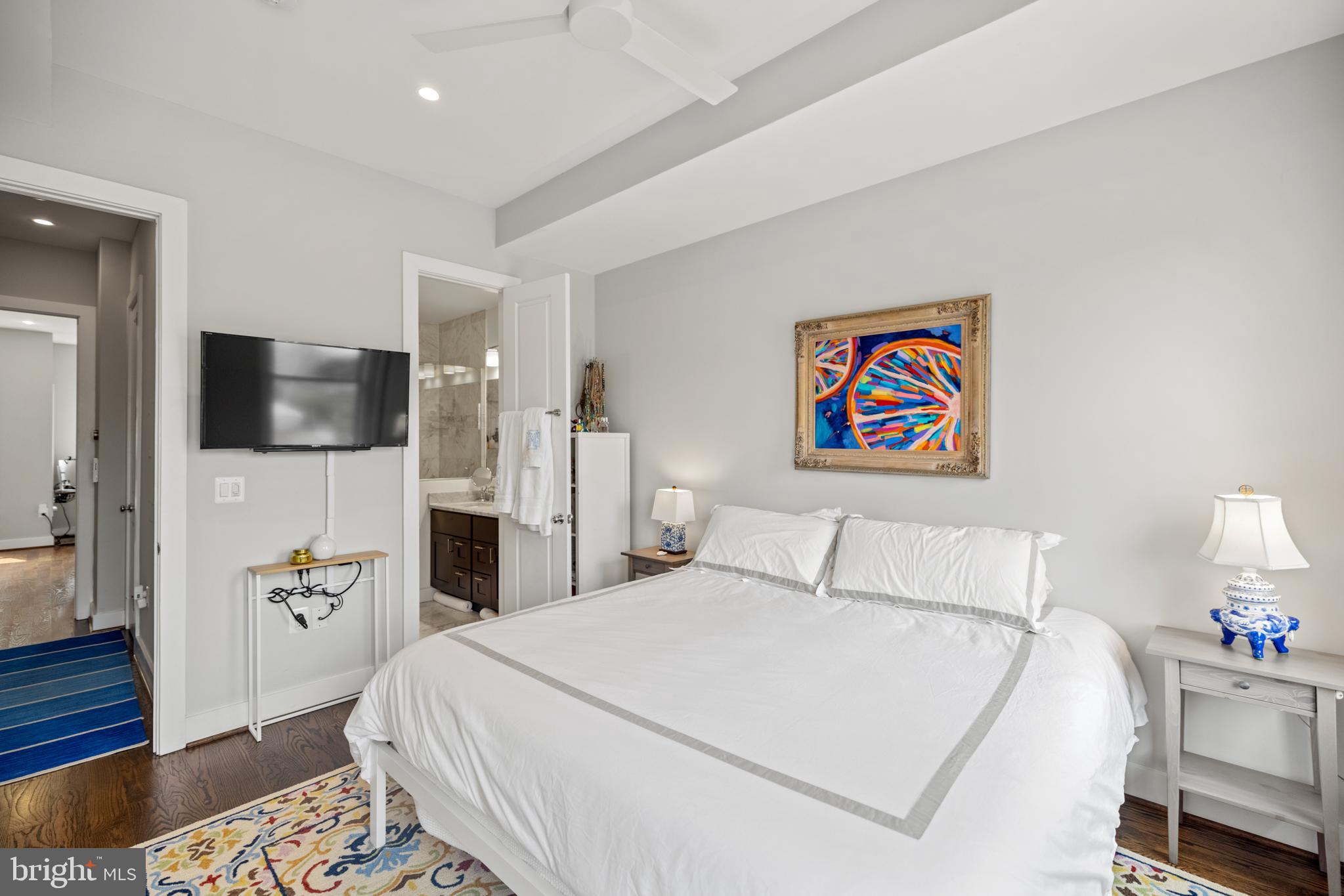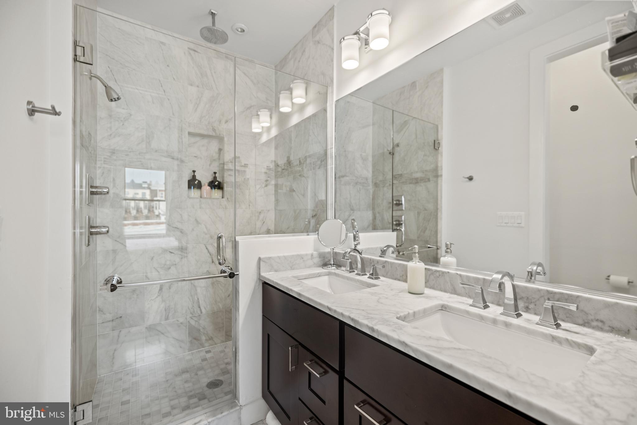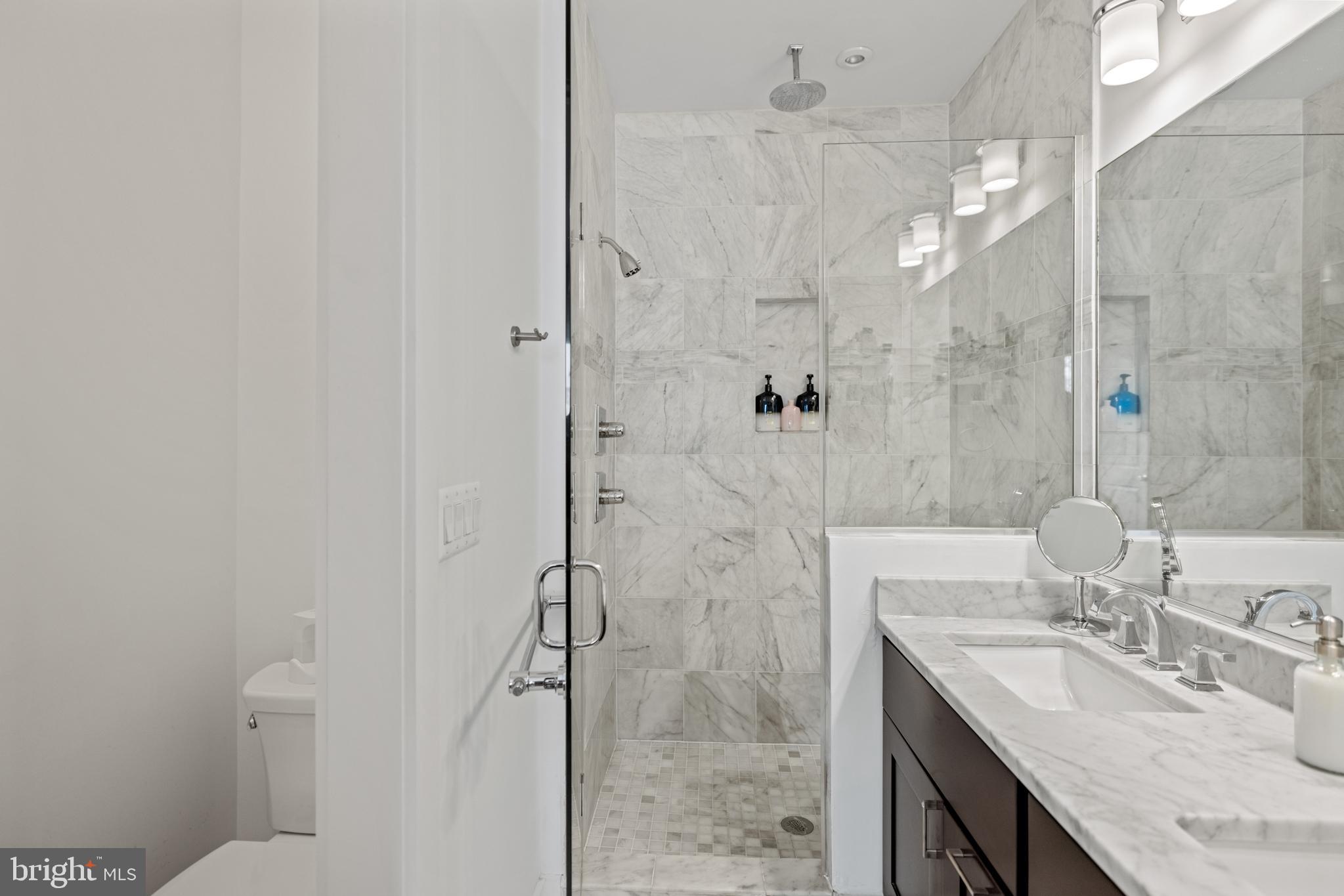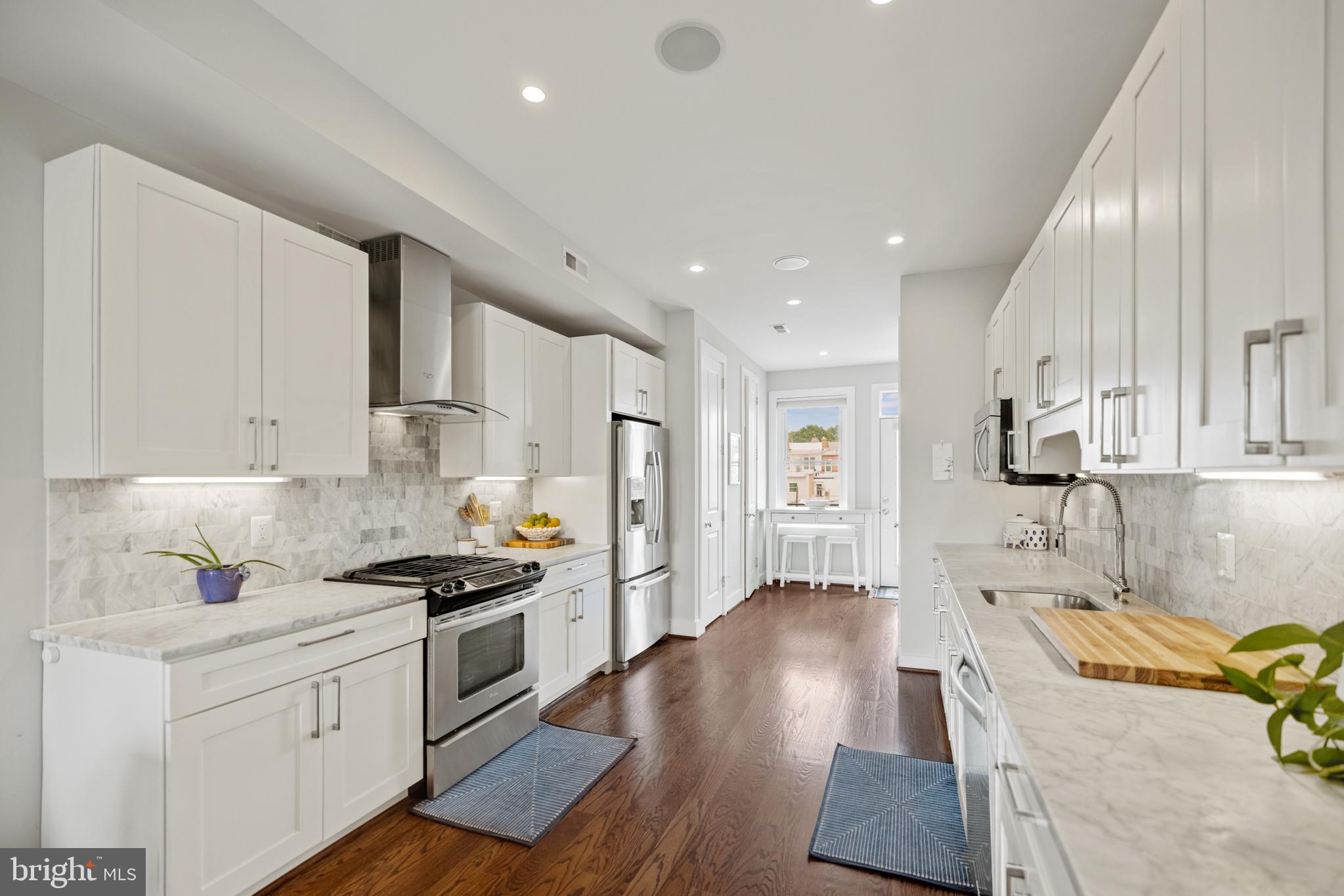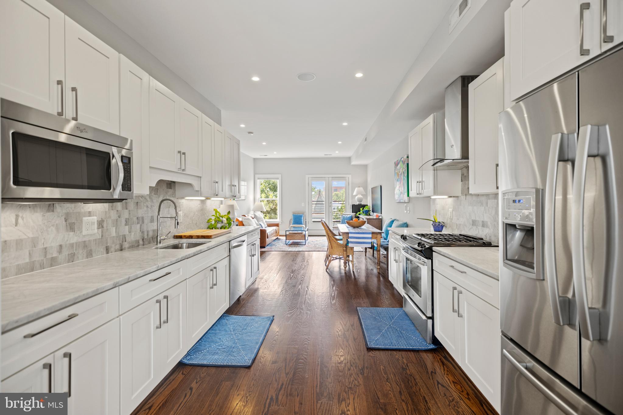 Penthouse Condo in Historic Bloomingdale | 2 Bed | 2.5 Bath | 1,300 Sf | Large Rooftop Deck & 2 Balconies | 1 Secured Parking Space | Building: 2 Units, Built in 2014, Boutique Building | Unit: Large Open Living Layout, Covered Balcony off Living Room, Large Windows w/ Lots of Natural Light, Recessed LED Lighting Throughout, Built-In Audio Speakers, Hardwood Flooring Throughout, Full Size Washer & Dryer, Powder Bath on Main Floor | Kitchen: Marble Subway Tile Backsplash Walls, Ample Built-In Cabinetry w/ Shaker Paneling/Doors, Under Cabinet LED Lighting, Marble Countertops, Stainless Steel Appliances, French Door Refrigerator w/ Bottom Freezer & Water/Ice Dispenser, Gas Range, Full Size Dishwasher | Baths: Frameless Glass Enclosed Shower w/ Waterfall Showerheads & Double Vanity in Primary Bathroom, Marble Topped Vanities w/ Storage, Marble Tile Shower Walls & Floors