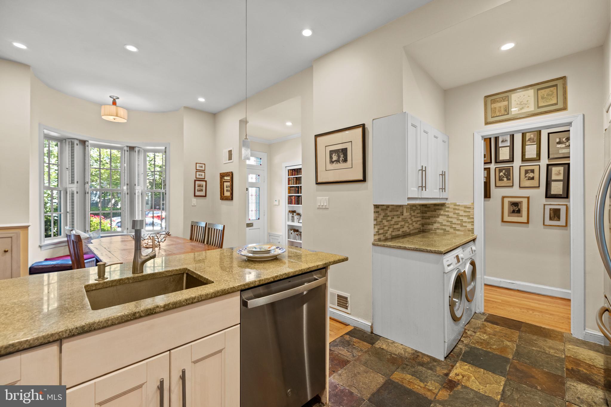 Discover your new home in this 3-level townhome with 2,050 square feet of living space. The separate living and dining rooms feature built-in cabinetry and ample seating. The kitchen is updated with granite countertops, a stylish tile backsplash, slate tile floors, and stainless steel appliances, including a French door refrigerator, full-sized dishwasher, and 5-burner gas range. There are 3 bedrooms and 2.5 bathrooms with hardwood floors and large windows throughout, offering natural light and scenic views of the vibrant backyard garden. The expansive floor plan includes a laundry nook with a large washer and dryer. Email us to schedule your tour today! | Large Home w/ Large Private Patio | 3 Bed | 2.5 Bath | 2,050 Sf | Home: 3 Level Home | Large Windows w/ Lots of Natural Light | Custom Shades | Large Bedrooms |Separate Living & Dining Rooms | Built-In Cabinetry Throughout | Hardwood Flooring Throughout | Kitchen: | Peninsula Island w/ Storage & Seating for 3 | Ample Built-In Cabinetry | Tile Backsplash | Granite Countertops | Stainless Steel Appliances | French Door Refrigerator w/ Bottom Freezer | 5-Burner Gas Range | Wall Oven & Microwave | Full-Size Dishwasher | Slate Tile Flooring | Bath: | Vanity w/ Storage | Mirrored Medicine Cabinets | Tiled Pony Walls & Backsplashes | Marble Tile Floors | Deposit: 1 month's rent | Minimum Lease: 12 months | Available: Immediately | Tenant Responsible for: Water, Electric, Gas, Cable, Internet & Phone | Pets: Case-by-Case w/ Pet Rent | Screening Process: All adults over the age of 18 must apply. Applicants are required to have verifiable income of 30 times the monthly rent (excluding voucher applicants) and be willing to sign a minimum 12 month lease. Credit background check will be completed as per DC law. Applicant(s) must also pass a criminal background check as allowable by DC law before signing a lease. Approval or denial will be provided within 5 business days.