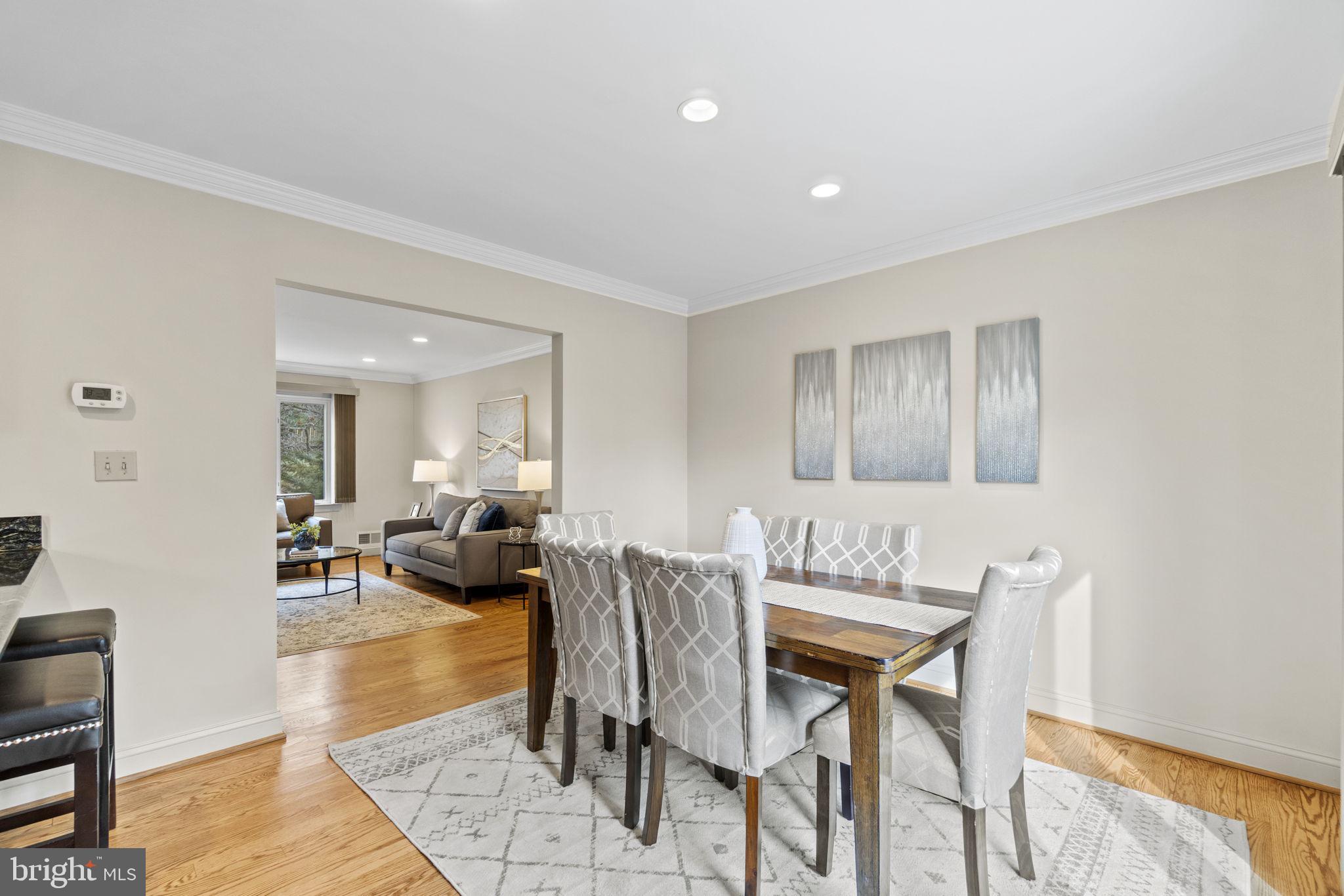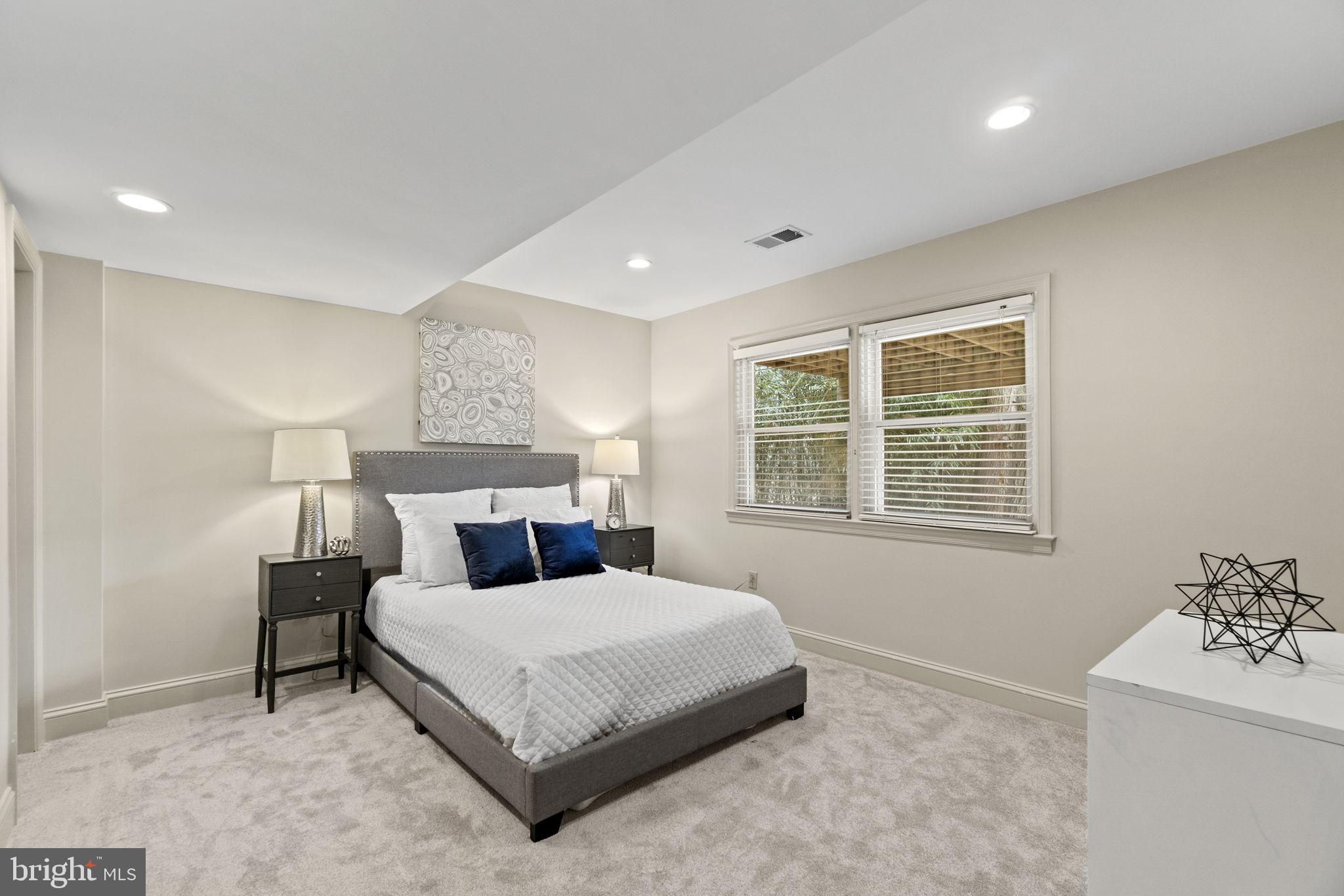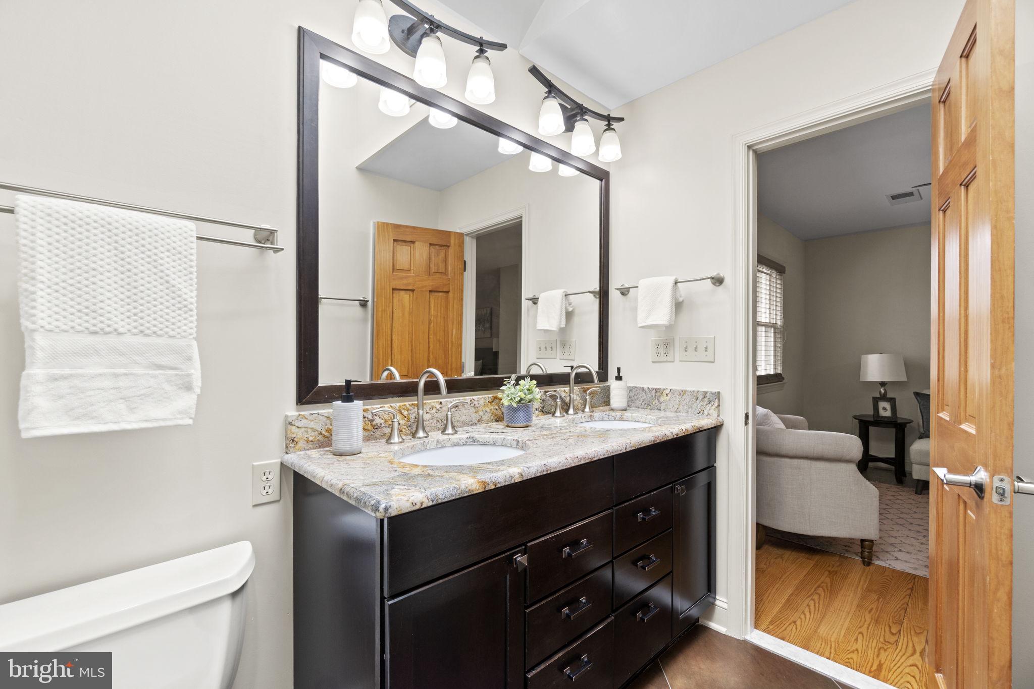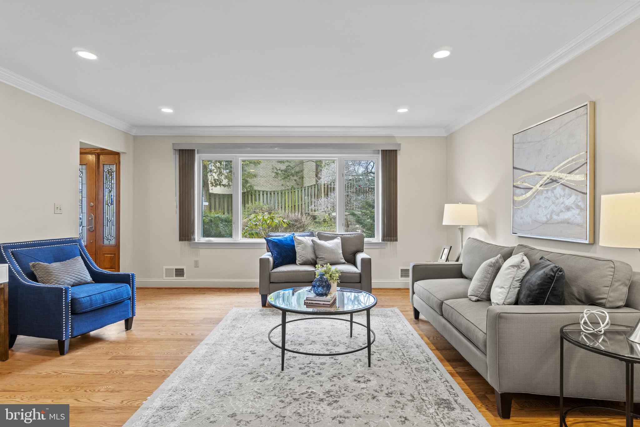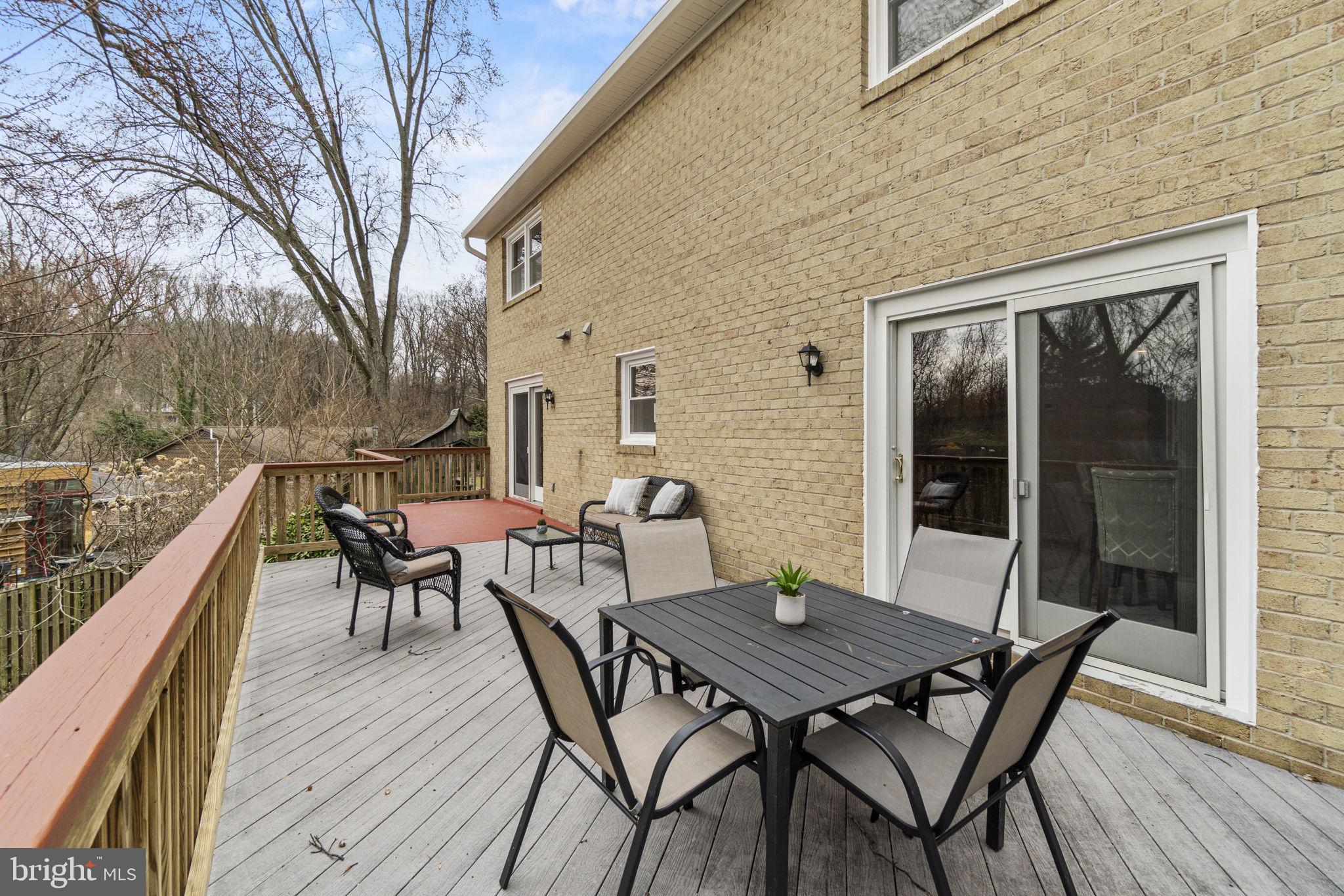 Set back from the street and tucked in a quiet cul-de-sac, this fully updated and renovated home is deceptively large and sits on a nearly 10,000sf lot. Accented with mature landscaping, a long driveway leads to an attached one-car garage and covered front porch entry. The front foyer is large and inviting, showcasing a lovely staircase, featuring a convenient coat closet and sight lines into the open kitchen and also features a convenient powder room. Large formal living room gets tons of natural light from a picture frame window and features recessed lighting. Living room leads into a generously proportioned dining room that overlooks the back deck through sliding glass doors. Stunning kitchen with abundant, gorgeous wooden cabinetry stretching to the ceiling, granite countertops, stainless-steel appliances, food pantry, recessed lighting and bar seating. Main level den conveniently located adjacent to the kitchen boasts a brick hearth fireplace with an elegant wooden mantle and accesses the rear deck through another set of sliding glass doors. Upstairs boasts three very generously proportioned bedrooms including an owner's suite, as well as hallway linen closet and shared hall bathroom. The envious owner's suite is large enough for a king-sized bed and large sitting room, features a tremendous walk-in closet with custom wood carpentry organization system, a convenient laundry chute and a spa-inspired en-suite bathroom. Owners en-suite bathroom features a dual vanity, lovely skylight, frameless glass enclosed ceramic tile, walk-in shower with steam function. Second and third bedrooms include ceiling fans, large walk-in closets and fantastic natural light from large windows. Hallway bathroom has a jetted tub with ceramic tile surround, large medicine cabinet and vanity and is complete with a skylight. Walk-out lower level is multi-functional, including as a separate apartment or au-pair/ in-law suite with full second kitchen, fourth bedroom and enormous den/ rec-room that could be an alternate fifth bedroom. Lower-level walks out to a covered brick patio beneath the deck and overlooks the serene and tranquil partially wooded backyard. Lower level also features laundry room, abundant storage as well as a large utility room with storage shelving and workshop space. Gorgeous hardwood floors stretch throughout the main and upper level of the home, the house is freshly painted including all ceilings, walls and trim, and the lower level has brand new carpet. Superb and unparalleled location in North Arlington; easy access to Lee Heights and Harrison Shopping Centers, I-66, Amazon HQ2 @ National Landing, Chain Bridge Rd. into Washington, D.C., loads of restaurants and grocery stores within one mile, and the Yorktown HS/Dorothy Hamm MS/ Taylor ES pyramid!