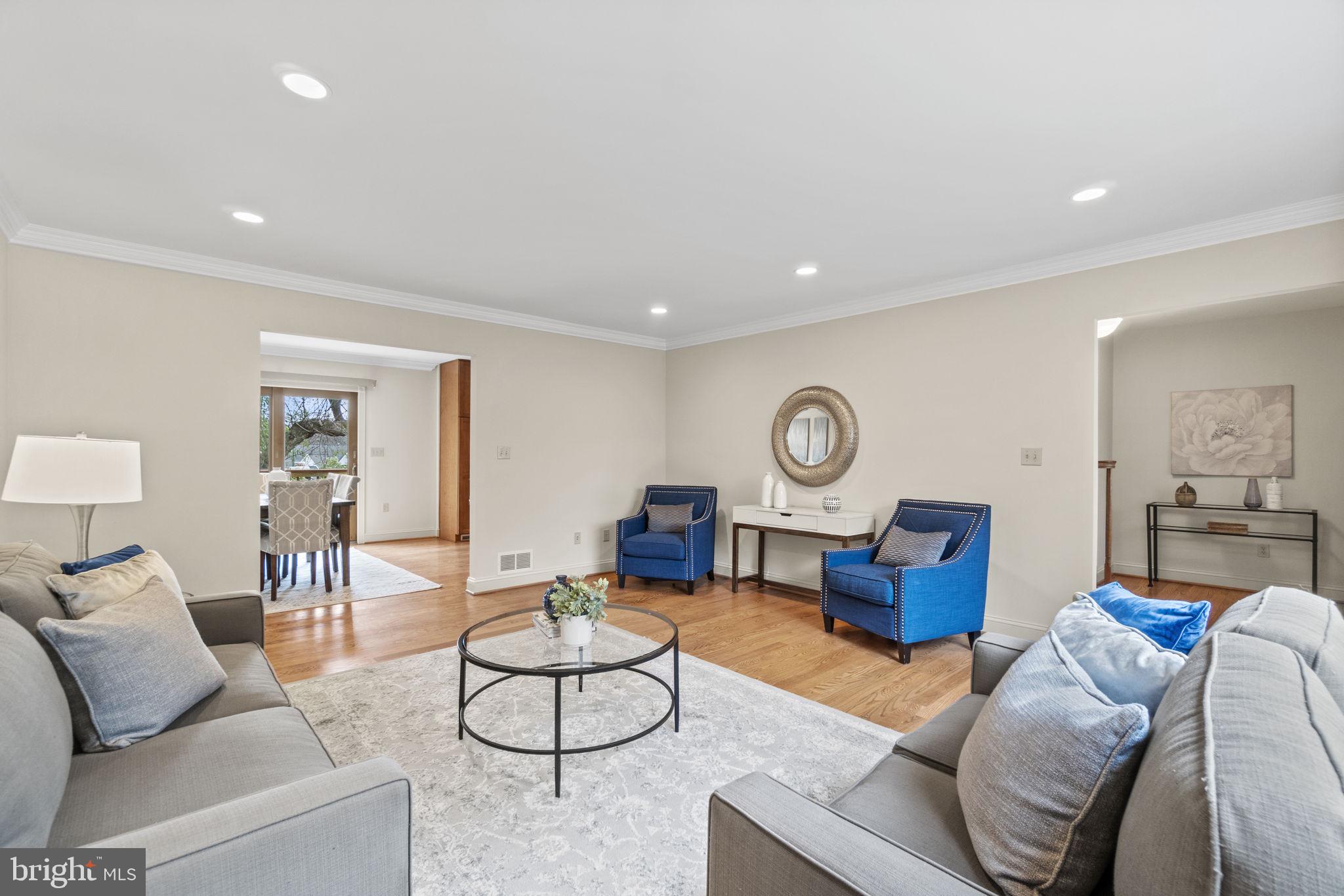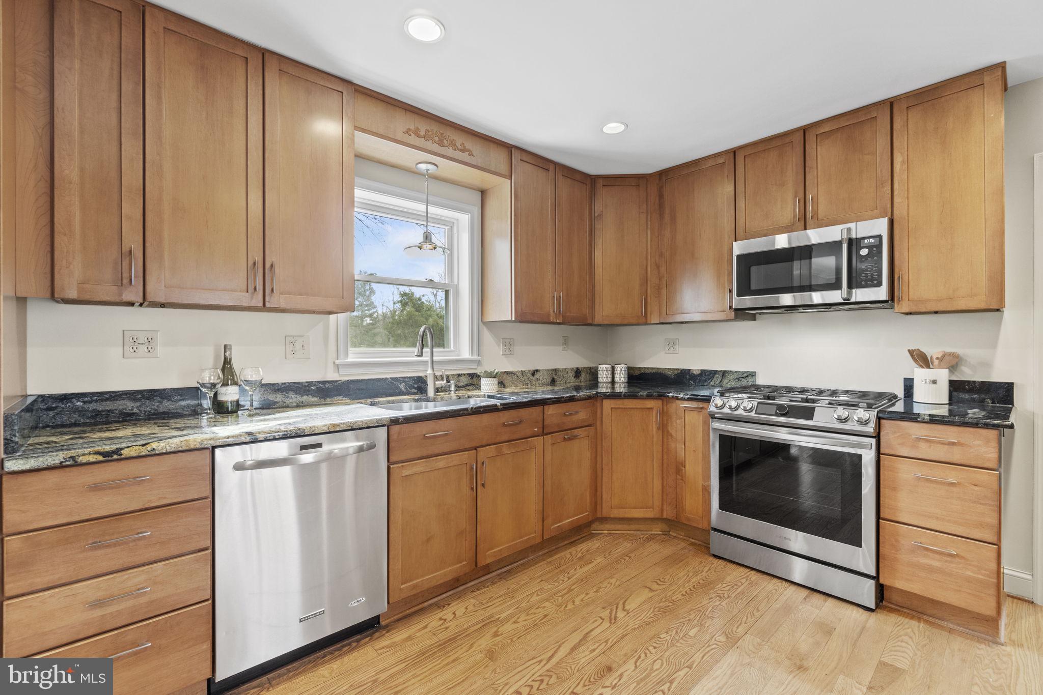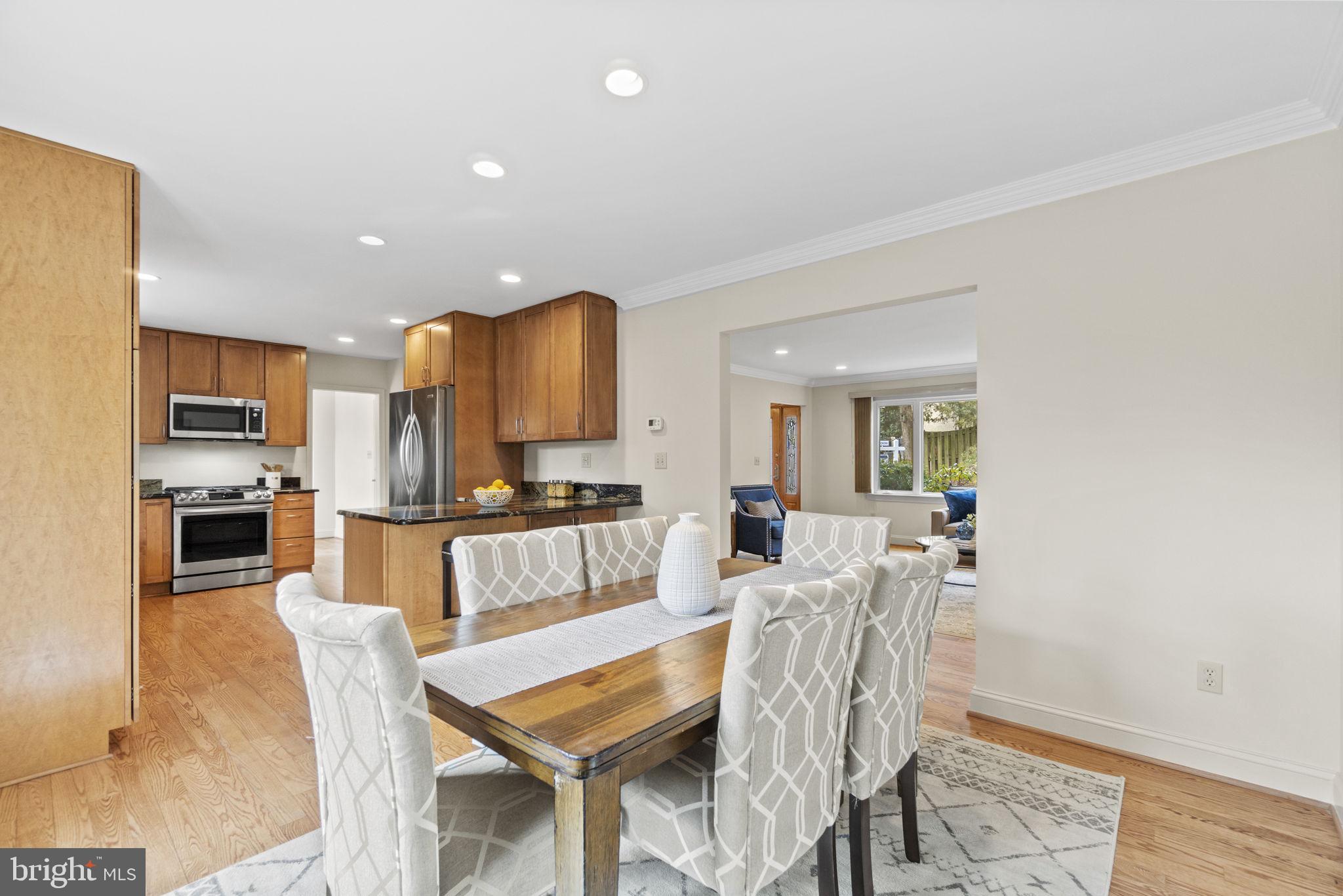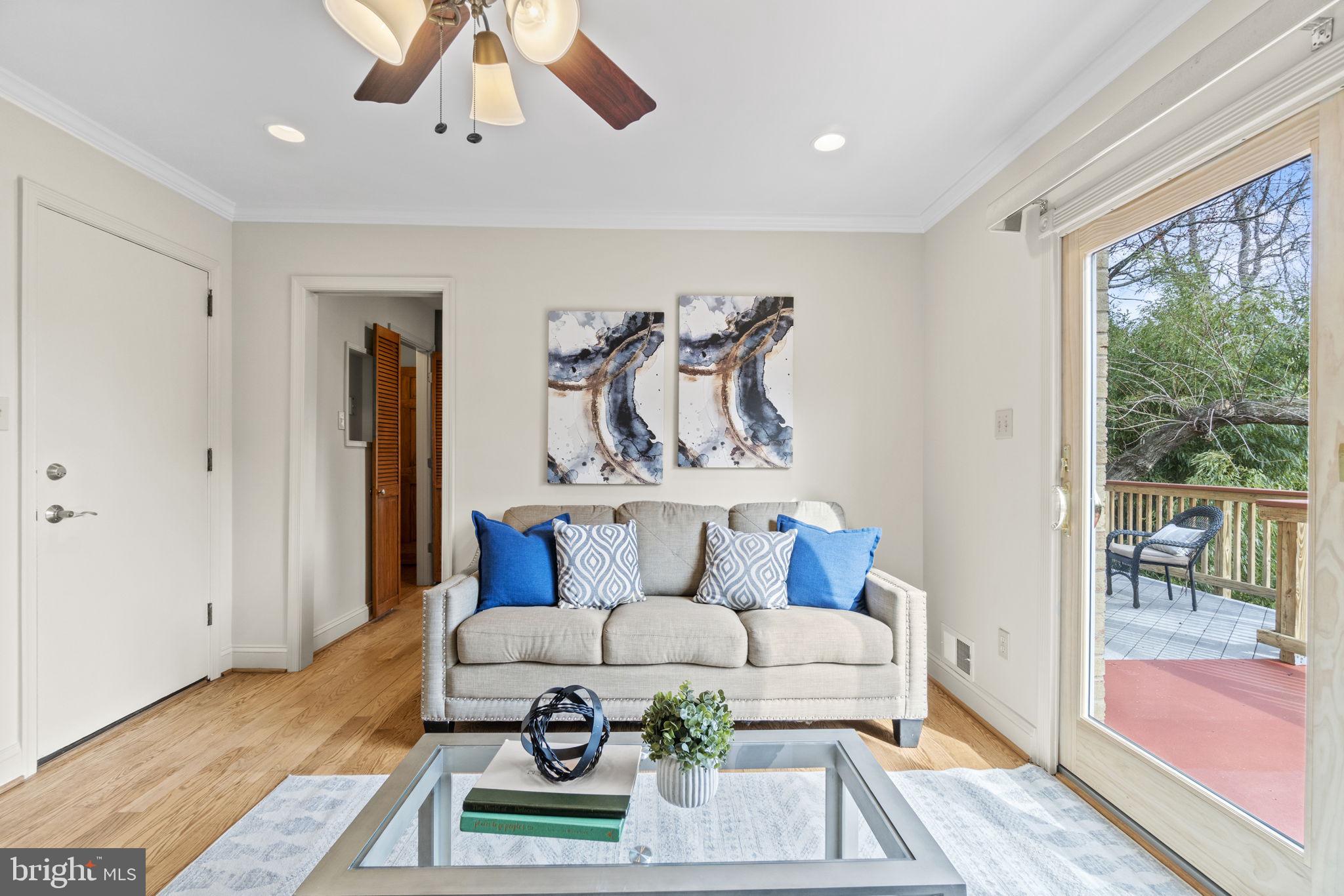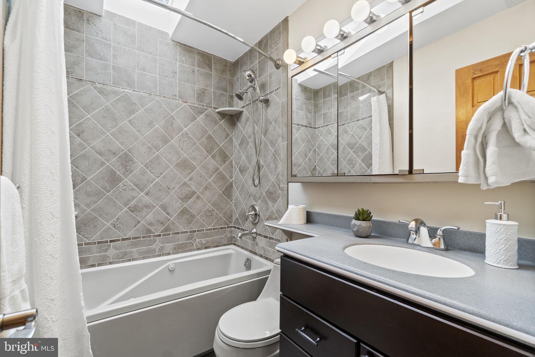 Set back from the street and tucked in a quiet cul-de-sac, this fully updated and renovated home is deceptively large and sits on a nearly 10,000sf lot. Accented with mature landscaping, a long driveway leads to an attached one-car garage and covered front porch entry. The front foyer is large and inviting, showcasing a lovely staircase, featuring a convenient coat closet and sight lines into the open kitchen and also features a convenient powder room. Large formal living room gets tons of natural light from a picture frame window and features recessed lighting. Living room leads into a generously proportioned dining room that overlooks the back deck through sliding glass doors. Stunning kitchen with abundant, gorgeous wooden cabinetry stretching to the ceiling, granite countertops, stainless-steel appliances, food pantry, recessed lighting and bar seating. Main level den conveniently located adjacent to the kitchen boasts a brick hearth fireplace with an elegant wooden mantle and accesses the rear deck through another set of sliding glass doors. Upstairs boasts three very generously proportioned bedrooms including an owner's suite, as well as hallway linen closet and shared hall bathroom. The envious owner's suite is large enough for a king-sized bed and large sitting room, features a tremendous walk-in closet with custom wood carpentry organization system, a convenient laundry chute and a spa-inspired en-suite bathroom. Owners en-suite bathroom features a dual vanity, lovely skylight, frameless glass enclosed ceramic tile, walk-in shower with steam function. Second and third bedrooms include ceiling fans, large walk-in closets and fantastic natural light from large windows. Hallway bathroom has a jetted tub with ceramic tile surround, large medicine cabinet and vanity and is complete with a skylight. Walk-out lower level is multi-functional, including as a separate apartment or au-pair/ in-law suite with full second kitchen, fourth bedroom and enormous den/ rec-room that could be an alternate fifth bedroom. Lower-level walks out to a covered brick patio beneath the deck and overlooks the serene and tranquil partially wooded backyard. Lower level also features laundry room, abundant storage as well as a large utility room with storage shelving and workshop space. Gorgeous hardwood floors stretch throughout the main and upper level of the home, the house is freshly painted including all ceilings, walls and trim, and the lower level has brand new carpet. Superb and unparalleled location in North Arlington; easy access to Lee Heights and Harrison Shopping Centers, I-66, Amazon HQ2 @ National Landing, Chain Bridge Rd. into Washington, D.C., loads of restaurants and grocery stores within one mile, and the Yorktown HS/Dorothy Hamm MS/ Taylor ES pyramid!