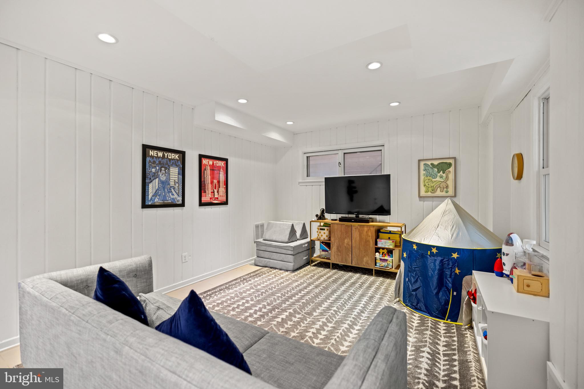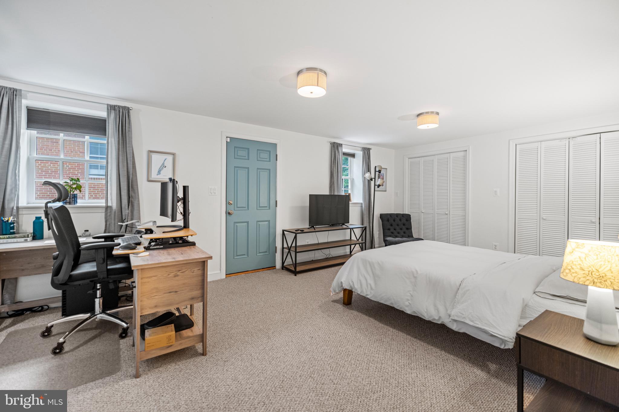 The walk-out basement has a large recreation room with high ceilings and abundant natural light. In addition there is a full bathroom with a walk-in shower and a sizable bedroom off the recreation room. This bedroom also has an incredible amount of storage and a separate entrance from the exterior of the home making it an ideal guest accommodation, in-law suite, and/or private office. The recreation room seamlessly connects to the backyard, creating an inviting space for indoor-outdoor entertaining. The backyard has a large flat grass yard and new stone patio with a stairway leading up to the terrace patio fully connecting the outdoor living areas of the home. Tucked away off the basement is a large storage area and laundry room. This space is easily adaptable into a second kitchen or kitchenette space for added functionality. The home also features a one-car attached garage with direct entry into the home and a long driveway with 2 tandem parking spaces.