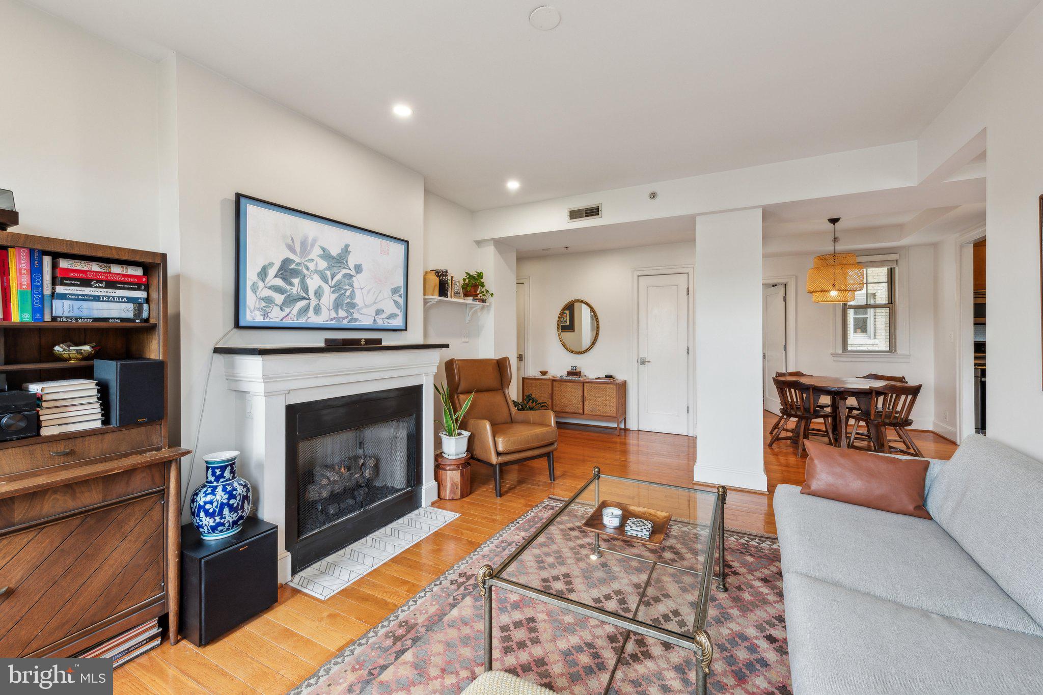 Nestled in one of DC's most beloved neighborhoods, this corner 2BR/2BA condo at the Argyle is a light-filled retreat with timeless style. Ten windows wrap the home in sunshine, highlighting rich hardwood floors and a gracious layout perfect for everyday living or entertaining. Cozy up by the gas fireplace in winter, or head up to the building's show stopping roof deck for summer sunsets over the city. The thoughtfully designed kitchen features granite counters and flows seamlessly into the open living and dining space. Both bedrooms are spacious with generous closets and big, bright windows. The primary suite closets keep your wardrobe organized with Elfa shelving. The baths are beautifully appointed--and the primary bath features a linen closet. Bonus: there is a basement storage space included! Set in the sought after Argyle a well-maintained elevator building with a low condo fee, The Argyle offers amenities like a guest suite, onsite manager, solar energy, and secure bike storage. Beautiful grounds and vintage tile floors welcome you home. Just steps from Metro, Rock Creek Park, and Mount Pleasant's vibrant dining and shops. Enjoy the Farmer's Market right outside your door, as well as Elle, La Tejana, Purple Patch, OKPB and more.