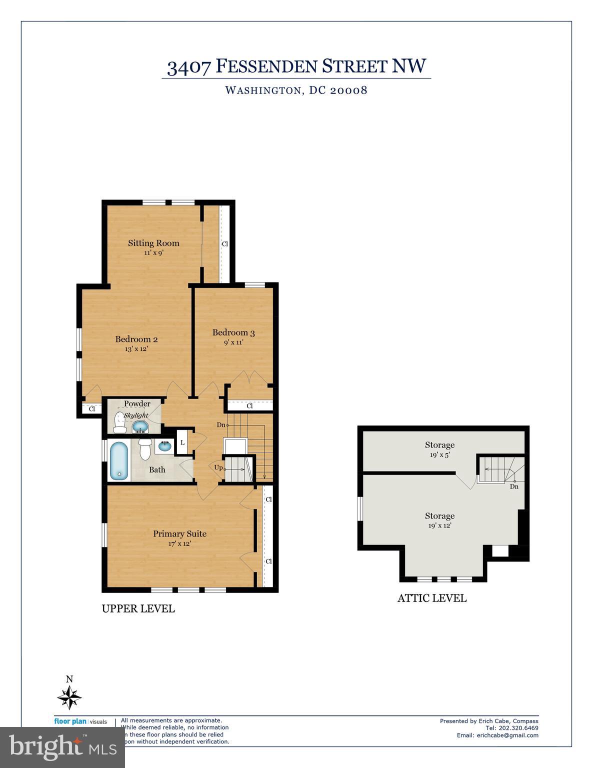 The second floor offers three well-sized bedrooms, a full bath, a half bath, and a staircase leading to a large third-level storage loft.