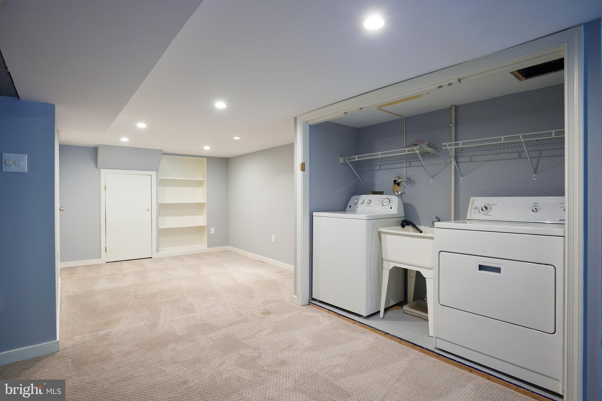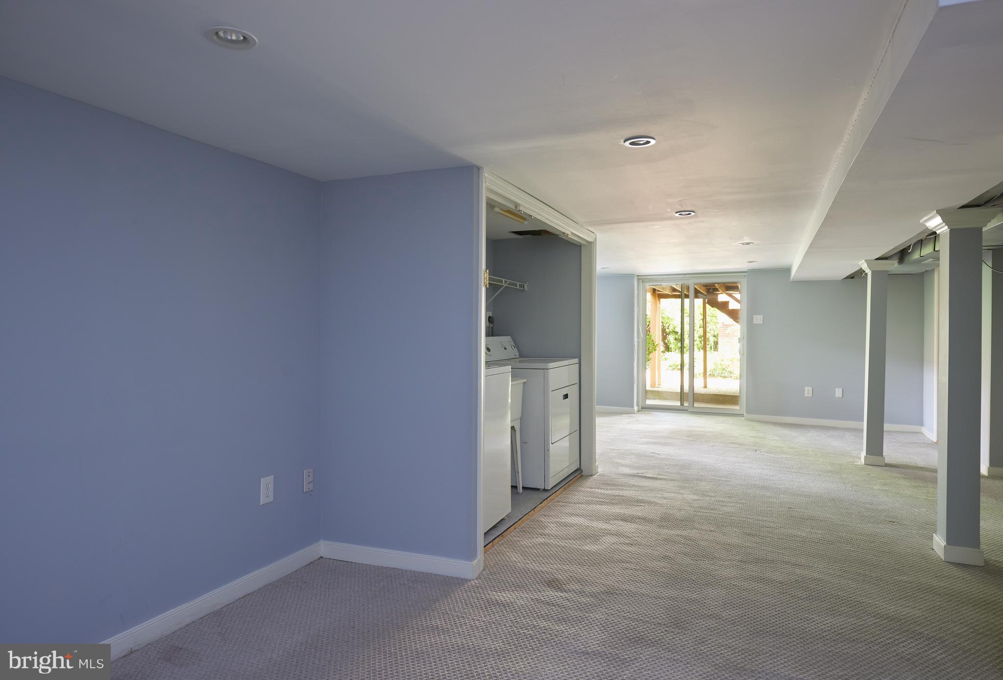 The walk-out lower level includes a large recreation room or guest suite, a full bathroom, laundry area, mechanical room, and additional storage space.