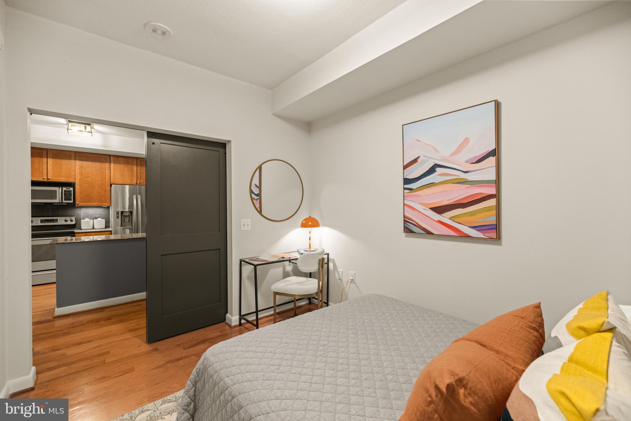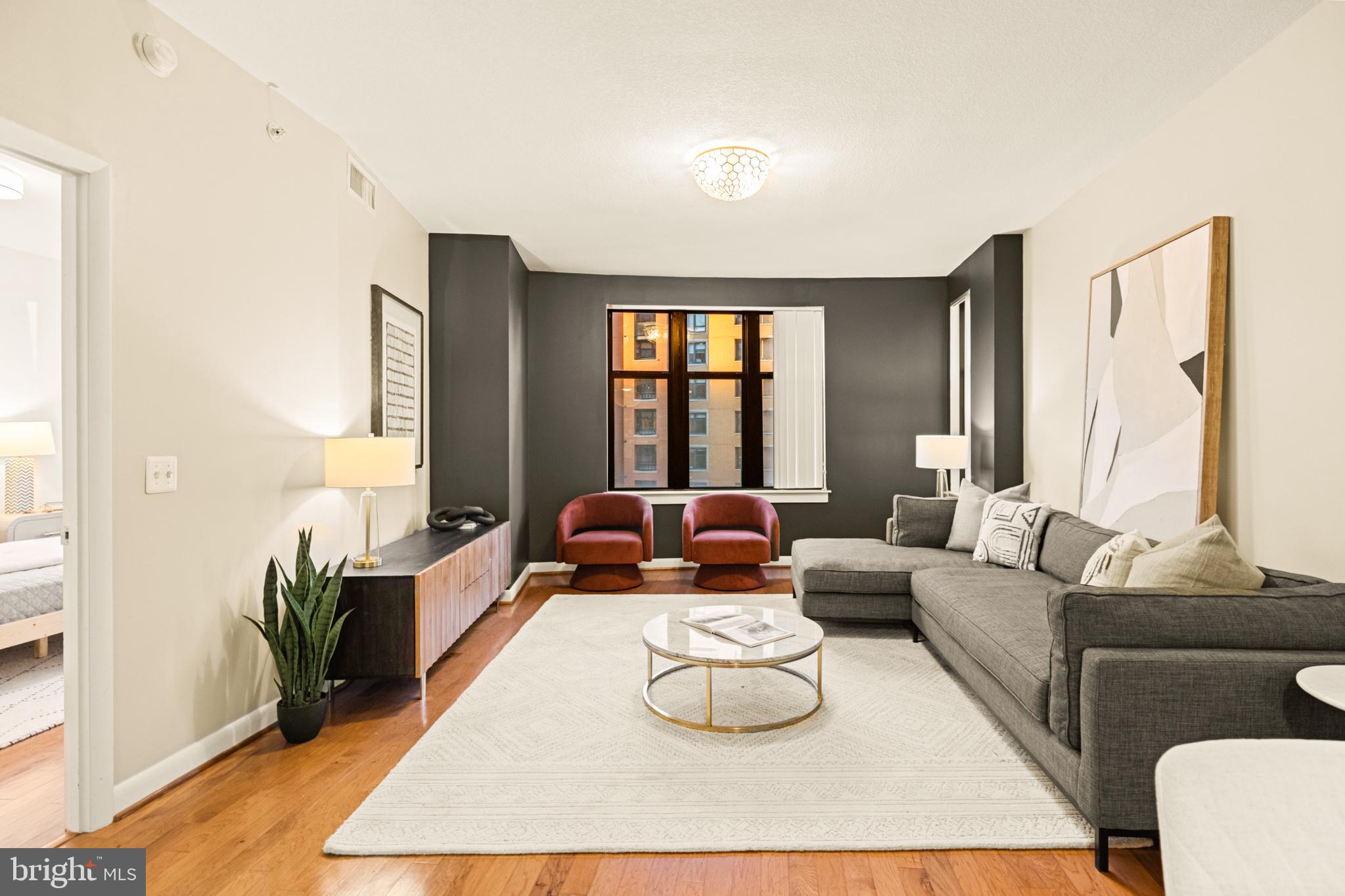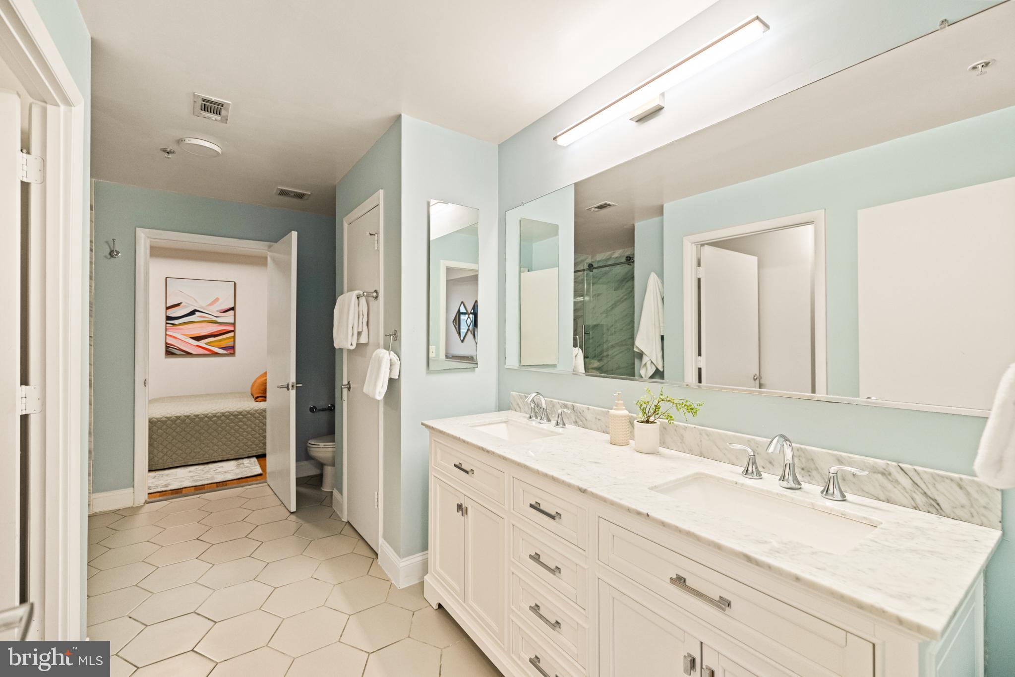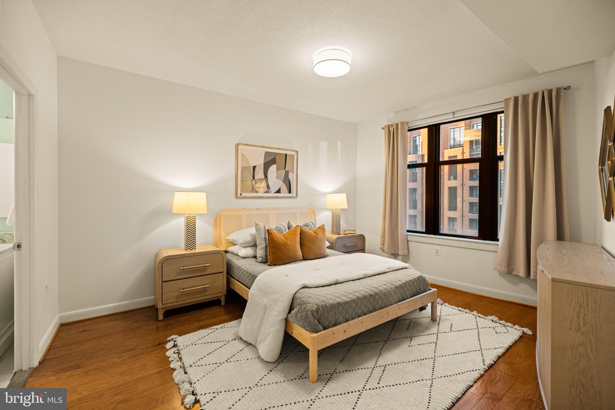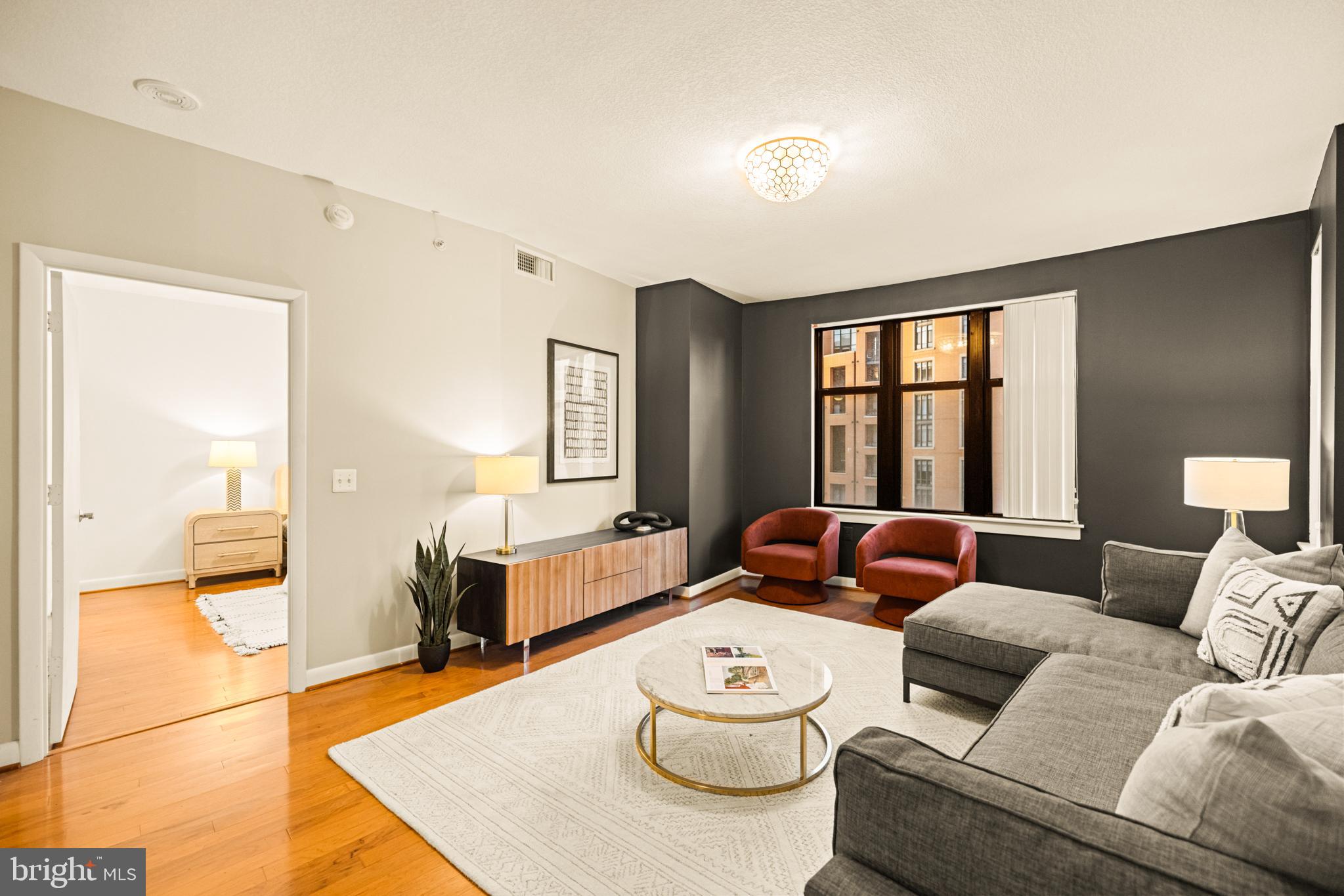 400 Mass Ave Condos | 1 Bed | 1 Den | 1 Bath | 975 Sf | 1 Garage Parking Space | Building: Built in 2005, 256 Units, Full-Time Concierge, 3 Elevators, Community Room, Fitness Center, Rooftop Pool, Business Center | Unit: Open Living Layout, Large Windows w/ Lots of Natural Light, Massive Walk-In Closet in Primary Bedroom, Office/2nd Bedroom w/ Sliding Barn Doors, Hardwood Flooring Throughout, Full-Size Washer & Dryer | Kitchen: Peninsula Island w/ Storage & Seating for 3, Additional Peninsula Island/Prep Station w/ Storage, Ample Built-In Cabinetry, Granite Countertops, Stainless Steel Appliances, French Door Refrigerator w/ Water/Ice Dispenser, Full-Size Dishwasher, Stainless Steel Double Basin Sink | Bath: Jack & Jill Bathroom, Frameless-Glass Enclosed Sliding Shower Door w/ Marble Tile Walls, Large Marble Topped Double Vanity w/ Storage, Mirrored Medicine Cabinets