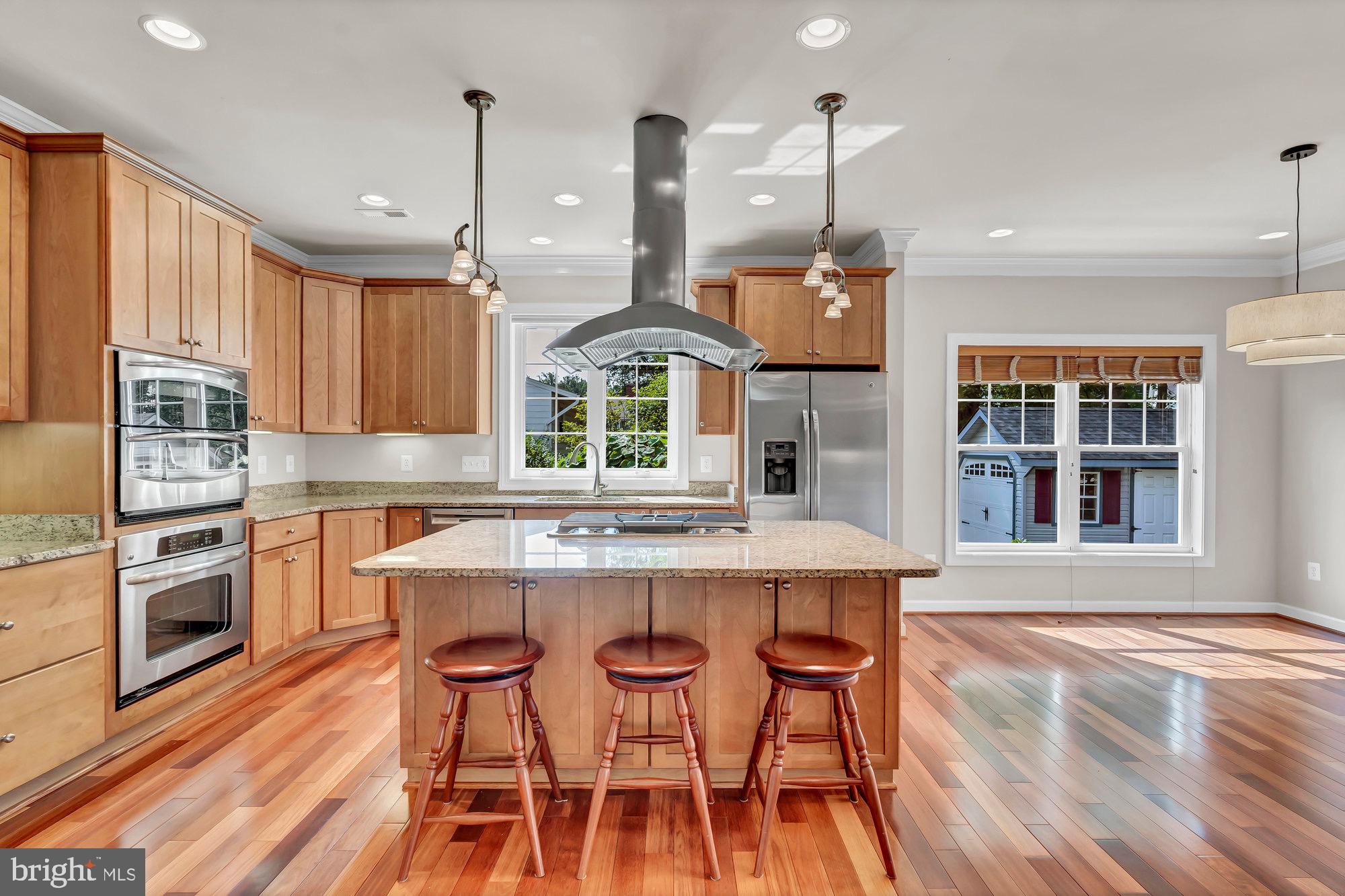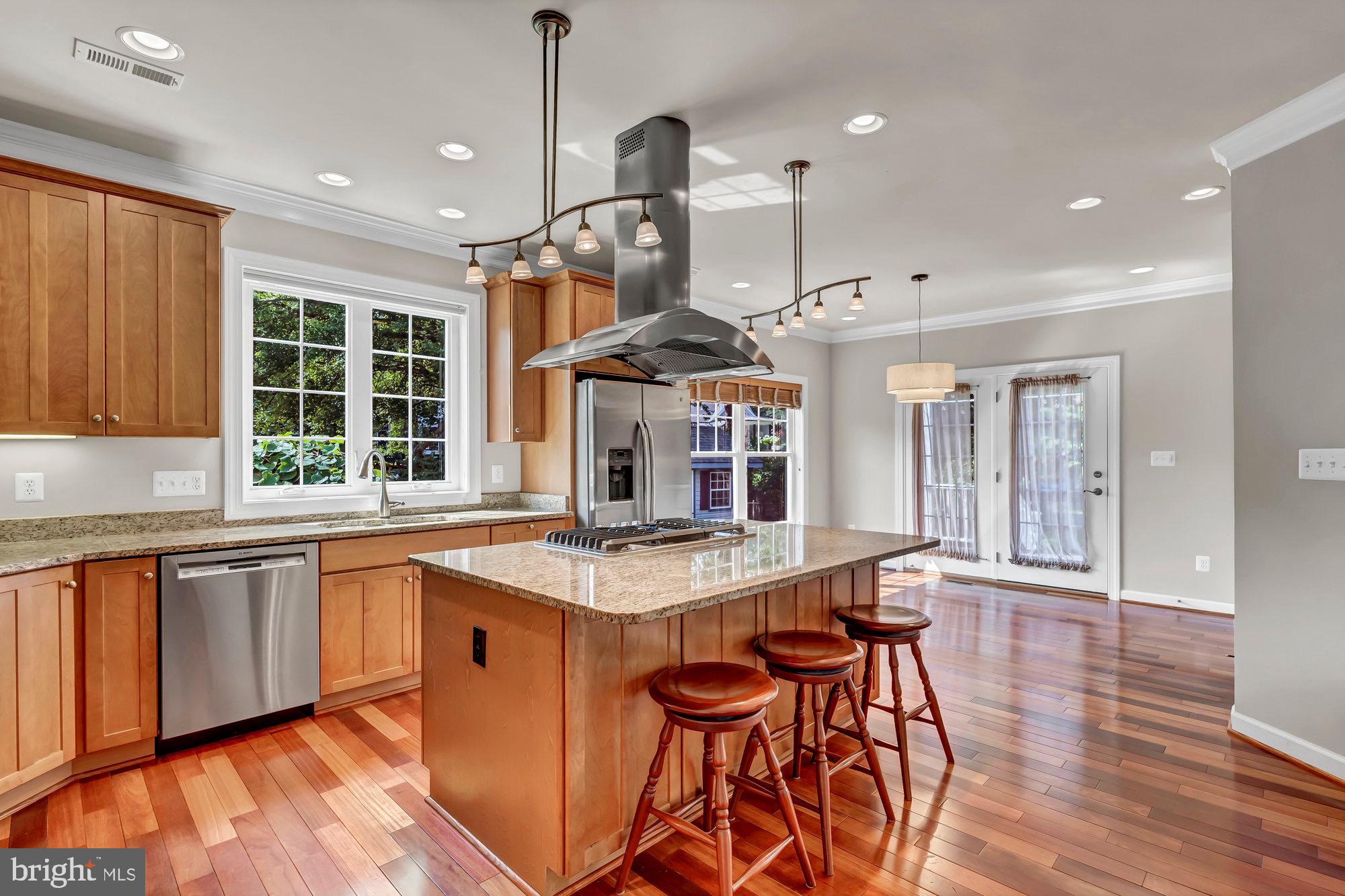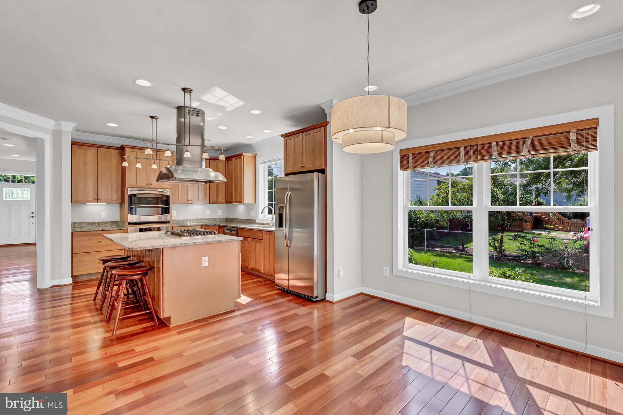 Exquisite craftsman style home nestled in East Vienna Woods on a .24 acre lot in the heart of downtown Vienna! This stunning home offers 5 bedrooms, 4.5 bathrooms, and 4,400 square feet of living space. The interior is elegantly designed, creating a seamless flow for entertaining, featuring a formal living room, dining room, family room with a gas fireplace, and French doors opening to the landscaped outdoor area. The gourmet kitchen boasts stainless steel appliances, a spacious island with bar seating, and a breakfast room. The upper level includes a luxurious owner's suite with a sitting room, dual walk-in closets, and a modern ensuite bathroom with a custom tiled shower. Additionally, there are three more bedrooms on this level, each with access to a full bathroom. The finished walkout basement offers a sizable recreation room, and additional living space that includes a 5th bedroom with a walk-in closet, a full bathroom, storage, and recessed lighting. The well-maintained yard features a welcoming deck, a storage shed with garage door access, and a two-car attached garage. This prime Vienna location is near the W&OD Trail, parks, community events, shopping, and dining establishments. Plus, it is within the sought-after Vienna/Thoreau/Madison pyramid. No HOA.