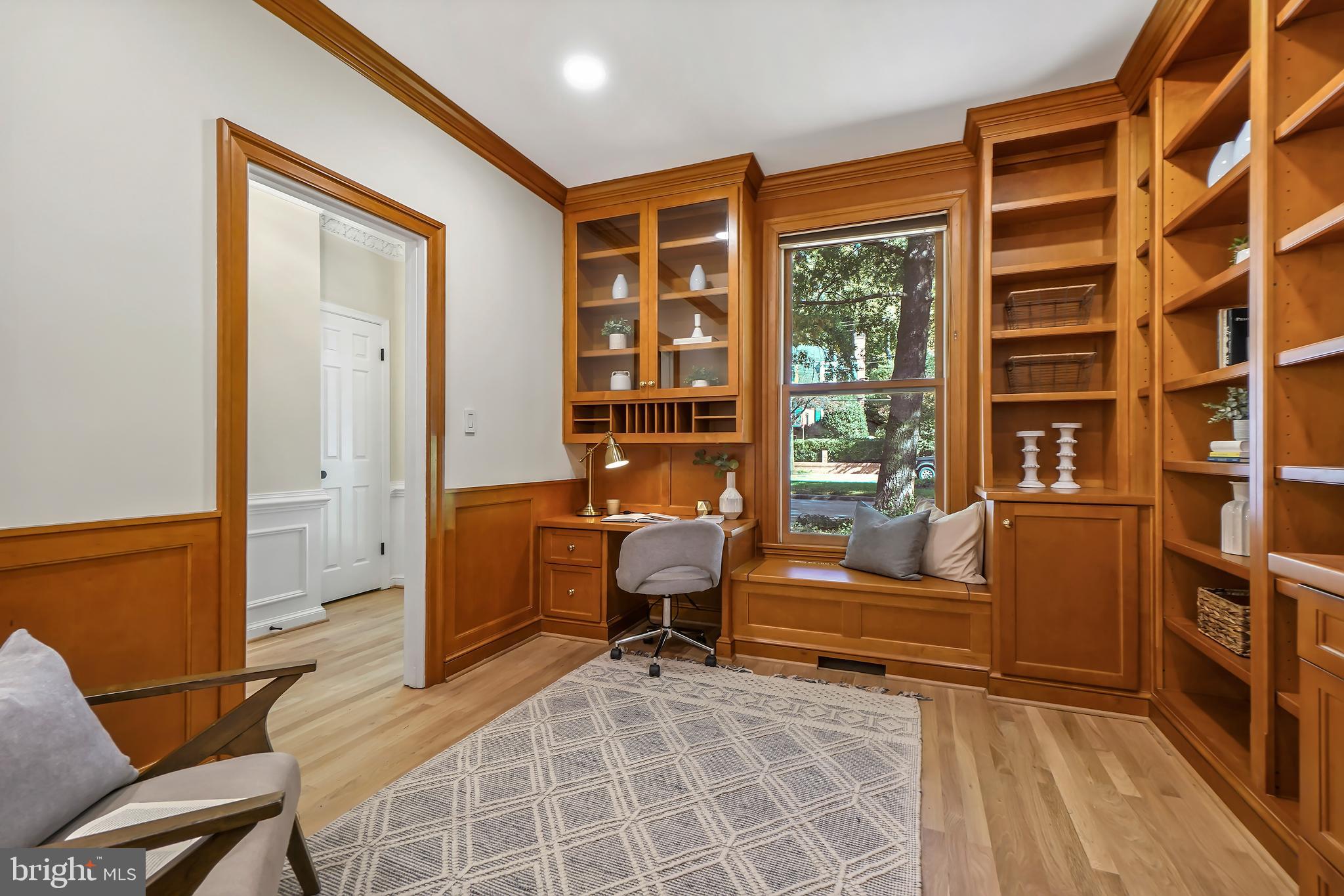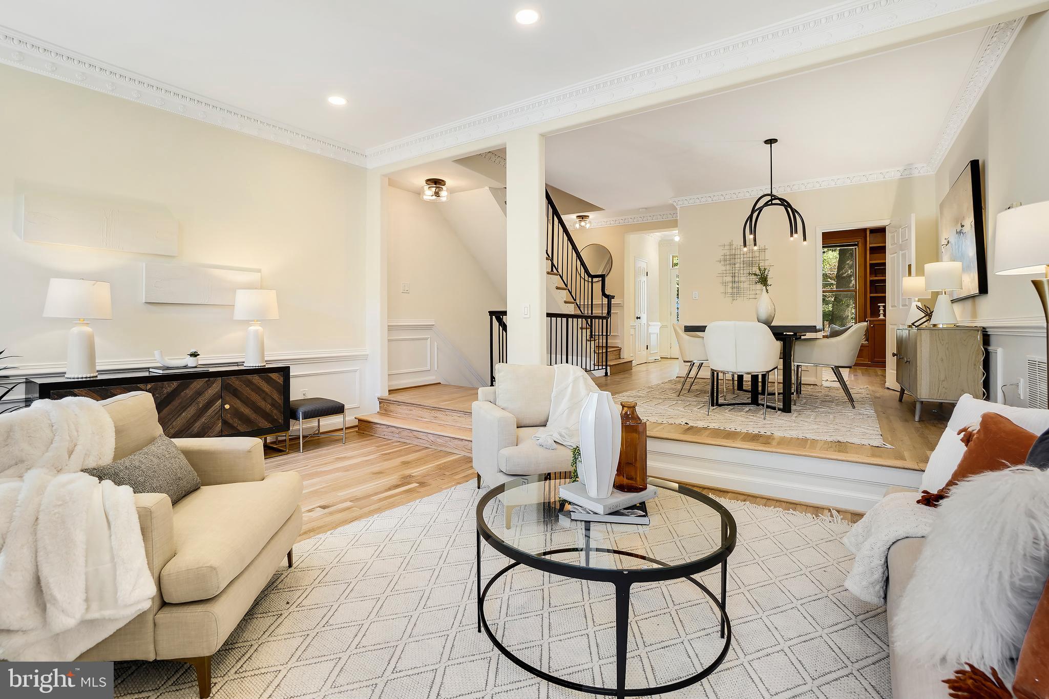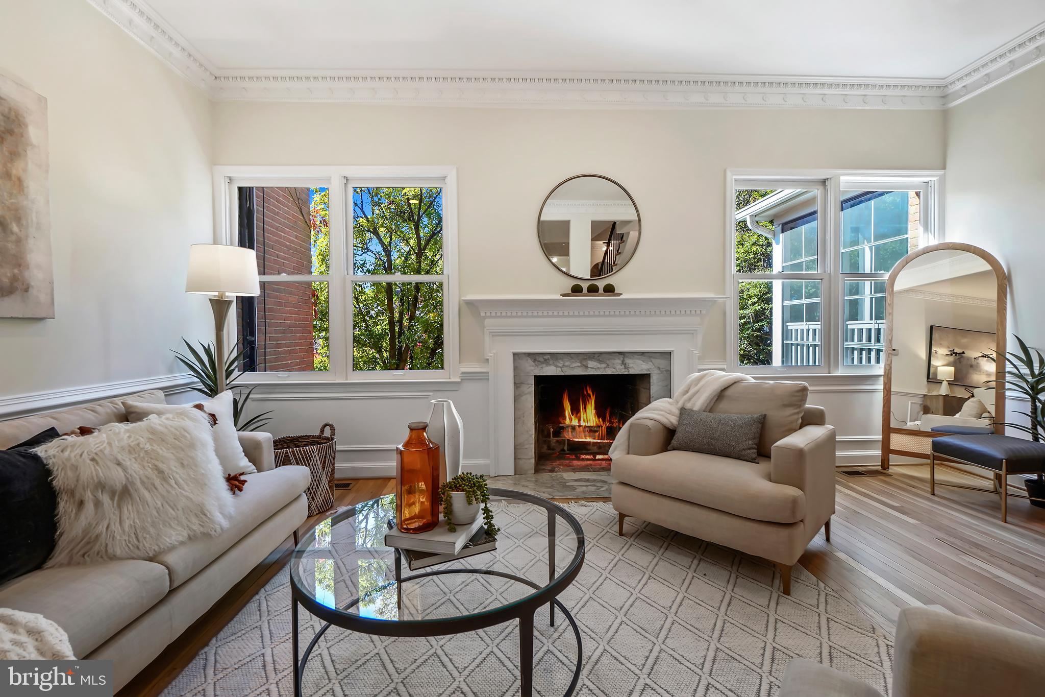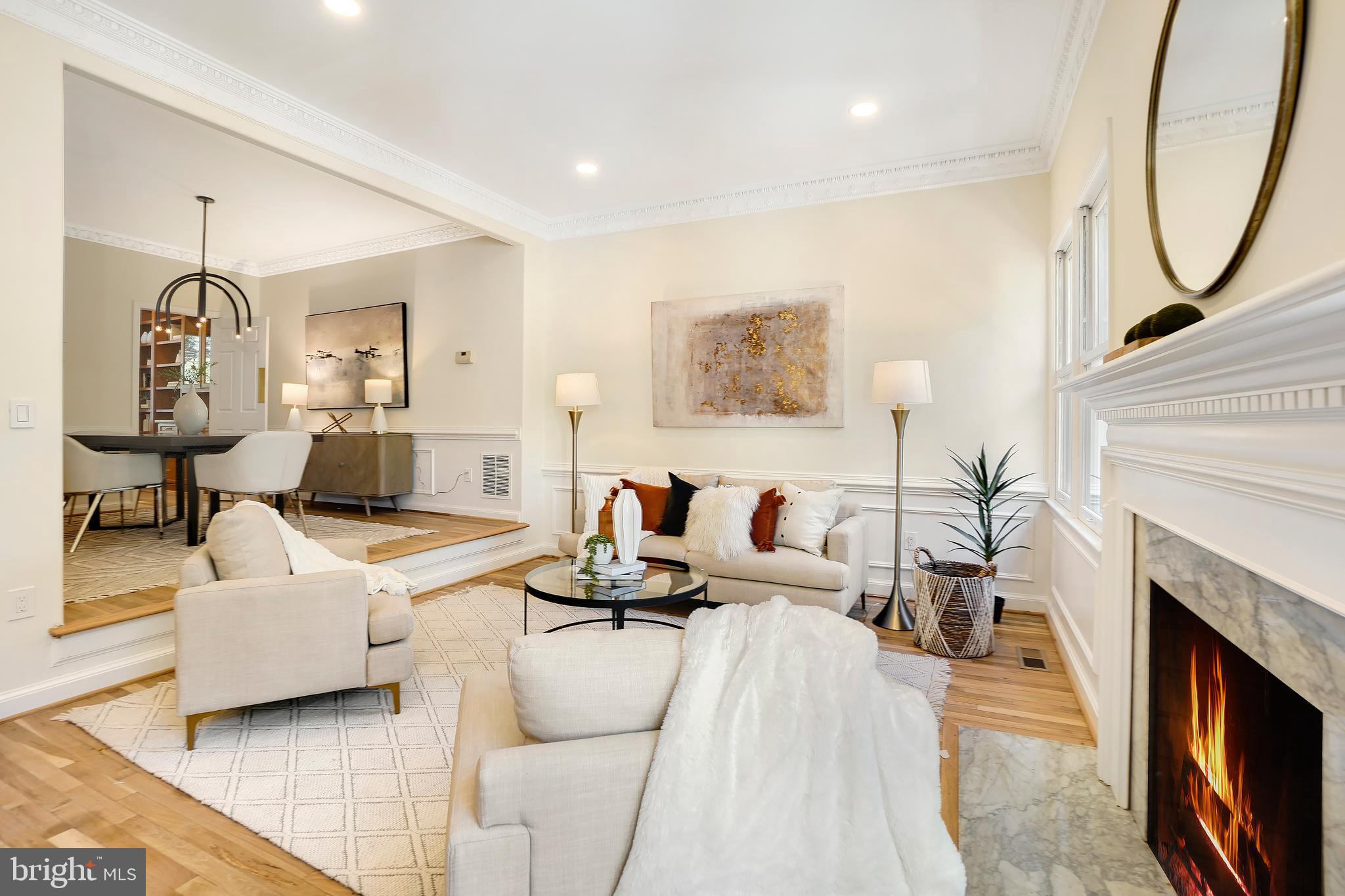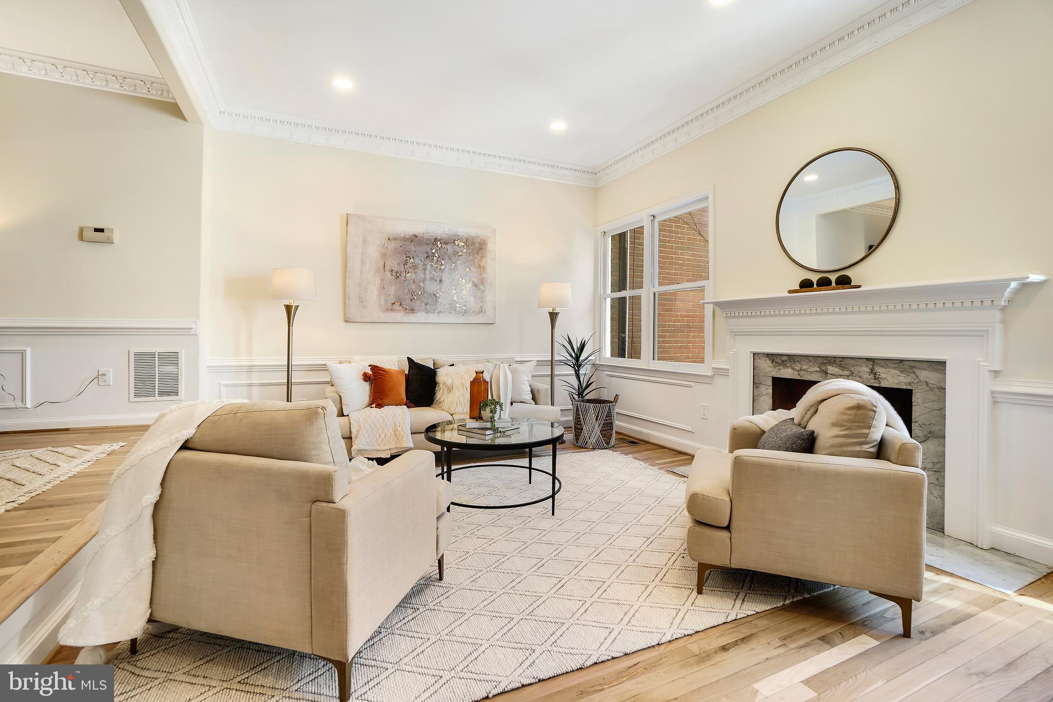Perfection in the Palisades. Boasting 3 finished levels, 3 bedrooms, 3.5 baths and 2 off-street parking spaces, this special townhome combines charm and elegance with the current updates discerning buyers seek. Upon entry, a spectacular wood-paneled library with extensive custom cabinetry and an expansive living space to entertain await. The large dining room flows seamlessly into the picturesque living room with its grand fireplace and wall of windows. The fully updated kitchen with stainless steel appliances, quartz counters and additional fireplace has French doors leading to the private patio and fenced rear yard. The spacious bedrooms with ample closets all have ensuite bathrooms. Perfectly located, the Palisades features easy access to restaurants, bars, shops, parks, playgrounds, medical care and public transit. Commuting to downtown DC is a breeze! Don't miss this rare find.