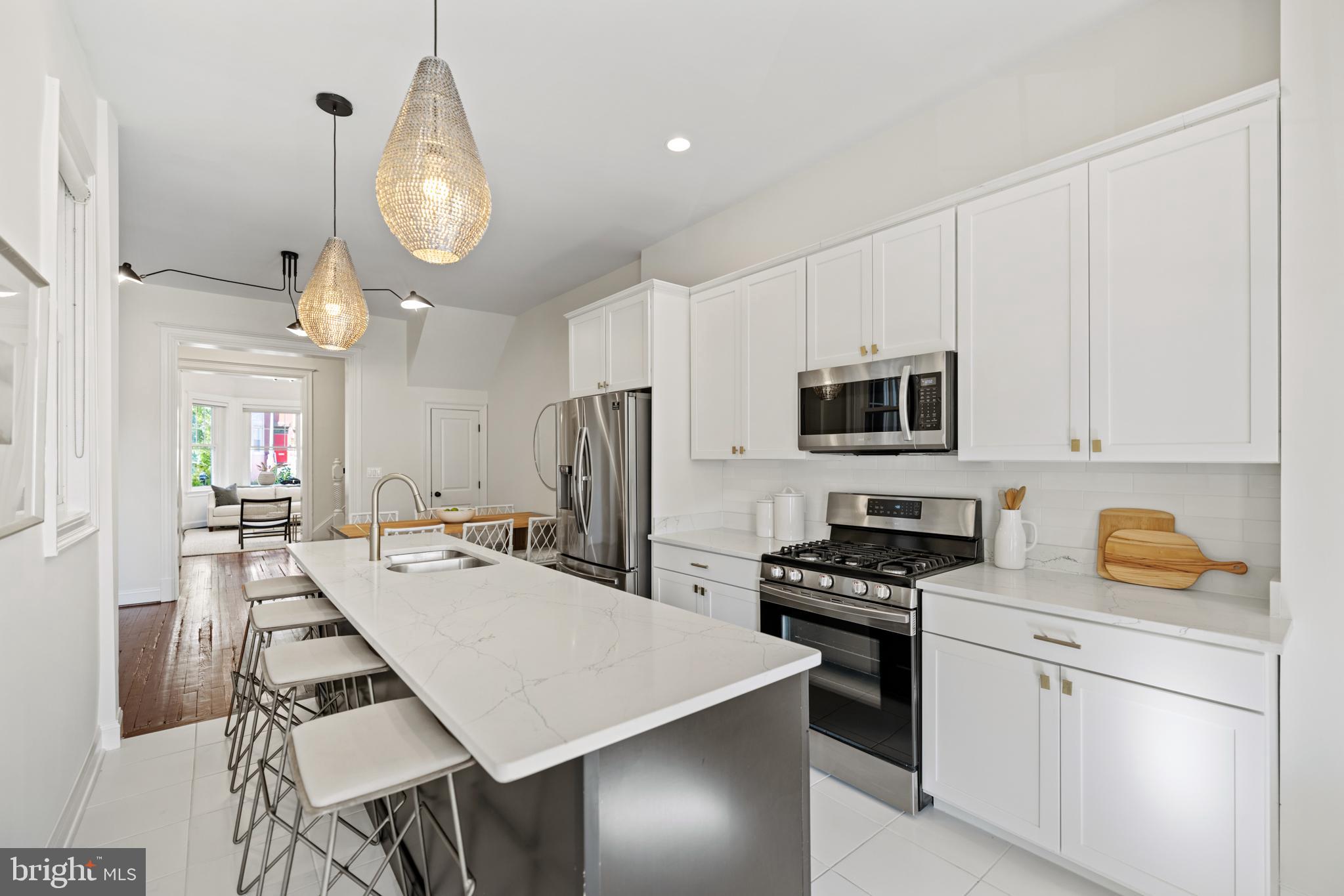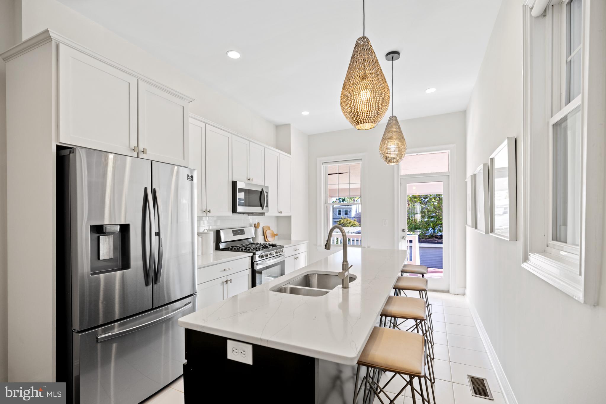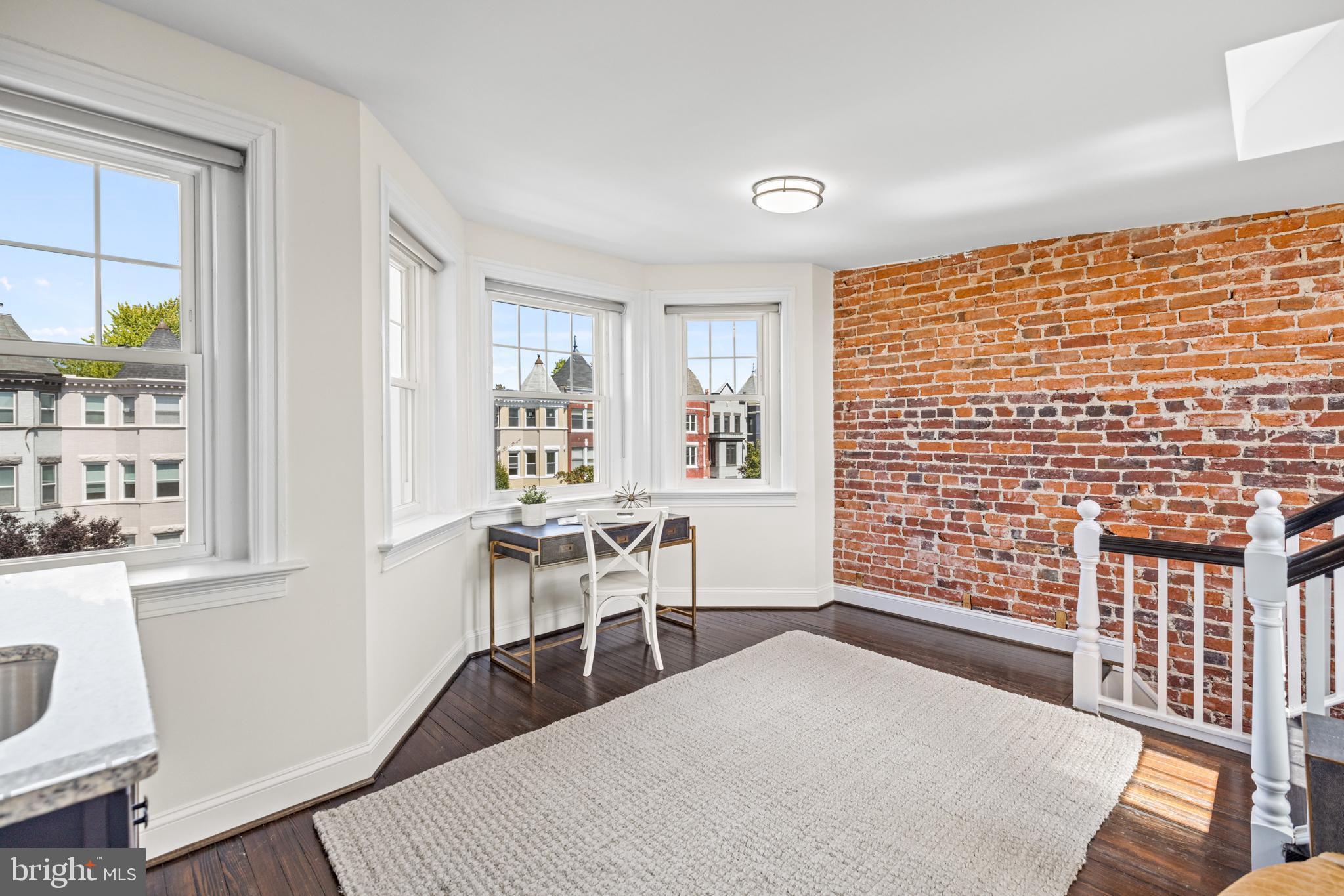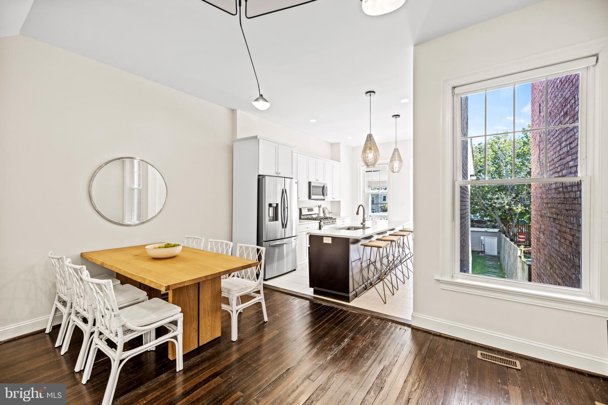 Stunning 4 Bedroom, 4 Bath Rowhouse in Bloomingdale/Ledroit Park | This beautifully renovated row house is located in the heart of the vibrant Bloomingdale/Ledroit Park neighborhood. With its spacious layout, high-end finishes, and private outdoor spaces, it is the perfect place to call home. The main level features a spacious living room with fireplace, a formal dining room, and a gourmet kitchen with ample seating, stainless steel appliances, quartz countertops and more. The upper level features a grand master suite, spacious closets and beautifully updated bathrooms. Entertain on the fabulous third floor with sweeping monument views from the large roof top deck and indoor wet bar. The lower level features a finished basement with a recreation room, guest bedroom, a full bathroom, and separate secondary laundry room. The private large backyard is perfect for entertaining guests or relaxing on a warm day. Finally, there is a two car garage on this oversized lot. This home is located just steps away from all of the amenities that Bloomingdale/Ledroit Park has to offer, including restaurants, bars, shops, and parks. It is also convenient to Metro.