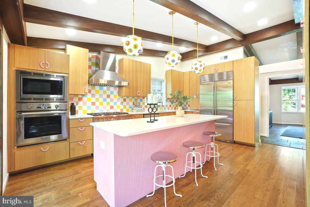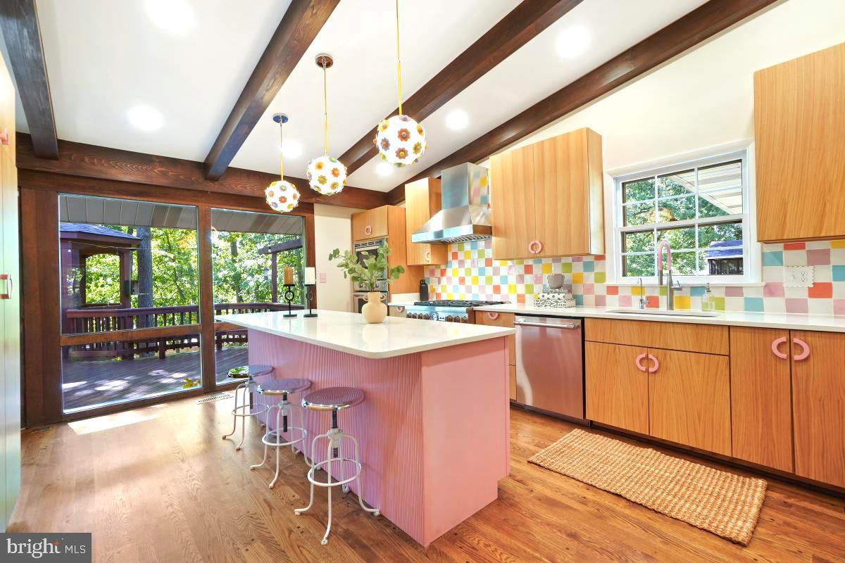 RARE OFFERING- EXCEPTIONAL & TRULY STUNNING SIX (6) BEDROOM/ 3.5 BATH SPLIT/ MID-CENTURY MODERN IN HIGHLY SOUGHT AFTER CHEVERLY GARDENS!*** RECENTLY FEATURED IN WASHINGTONIAN MAGAZINE-ONLINE!*** FABULOUS THROUGHOUT- MID -CENTURY MODERN MEETS TODAY'S MODERN! Sophisticated and inviting, comfortable and casual, whimsical and joyful! Generous interior spaces flow with ease making the home feel unified, spacious and is ideal for casual family living and spirited entertaining! INTERIOR SPACES: Boasting over 4,000+ sq. ft (per tax record) of living space on four levels! With recent renovations this fine property is a buyers dream home! Turn key ready! Gleaming hardwoods, new designer Benjamin Moore paint throughout, new carpeting (upper level & bedrooms), loads of natural light & glorious open floor plan. MAIN LEVEL: Upon entering you are greeted by classic mid-century tiled hallway leading to a large living room complete w/ wood beamed soaring cathedral ceilings, exposed, all brick wood burning fireplace, recessed lighting and floor to ceiling windows w/French door leading to the upper deck and Gazebo area. A separate, semi-private "banquet" sized dining room is ideal for formal dinner gatherings and entertaining. The "piece de resistance" is the stunning new custom designed Gourmet / Chef's Kitchen with all the bells and whistles! Fabulous white quartz countertops & tambour-style center island, creative custom designed backsplash tiles, high end Grohe fixtures, custom designed pendant light fixtures and recessed theatre lighting, "top of the line" stainless steel appliances include; all "Thermador" appliances; industrial stove/range, wall oven, dishwasher & built-in microwave and a "Sub Zero" refrigerator. Solid white oak custom cabinetry w/loads of storage space and hardwood flooring! A main level separate laundry room and half bath complete this level of the home. UPPER LEVEL: Boasting three (3) large bedrooms total - including the primary suite along with an updated en-suite, two other large bedrooms and a fully renovated full bath. Custom Plantation shutters throughout - all convey. 1ST LOWER LEVEL: Generous spaces and light filled! Dramatic family room w/ exposed brick wood burning fireplace, new checkerboard tiled flooring, recessed theatre lighting, wet-bar w/ quartz counter & beer/ wine refrigerator and floor to ceiling windows w/ French door opening to outdoor spaces/ patio! Two (2) additional bedrooms. Also boasting a full bath and additional closet storage. 2ND LOWER LEVEL: Huge recreation room great as an additional family room, exercise/art studio, childrens playroom or entertainment / music room. There is an additional sixth (6) bedroom, cedar closet and utility room! Unbelievable spaces continue- Adjoining is a large "former" 2- car garage turned into project and/or storage room w/ endless possibilities. EXTERIOR SPACES: This fine residence is ideally sited on a 14,000 sq. ft. lot (.32 acre) professionally landscaped, FLAT and partially treed lot! Amazing outdoor spaces await! QUIET AND SERENE! Proudly showcasing a glorious upper wood deck and Gazebo, loads of "hardscape" include two back patios one currently being used as a basketball court. New custom wood fencing fully encloses the backyard- a private setting! A perfect natural environment that has it all; w/ trees, perennial plantings, green lawn and even a raised vegetable garden! A children's outdoor play center too! There is a OVERSIZED two (2) car "carport" and brand new (completed in September) concrete driveway w/ enough parking for up to four cars (4) ! LOCATION, LOCATION!: Awesome location just off the BW Parkway and just minutes to downtown DC , Cheverly METRO, the Capital Beltway, parks (Gast & Town), hospitals, shopping, restaurants, weekly Cheverly Community Farmer's market, and entertainment! THIS ONE IS A TRUE GEM- ONE OF A KIND OFFERING!