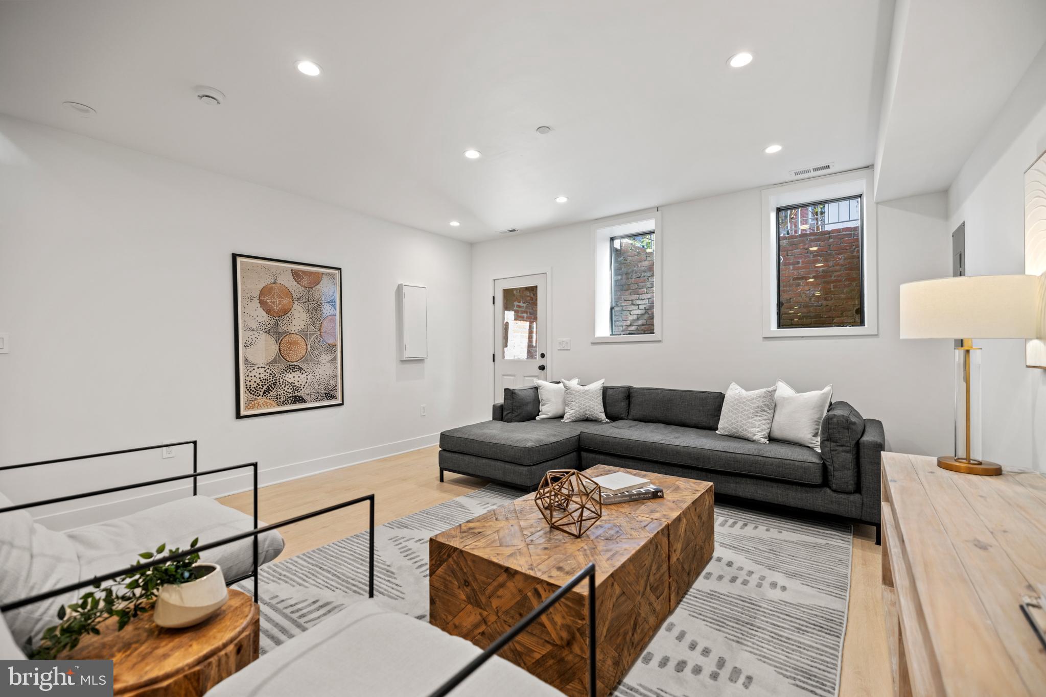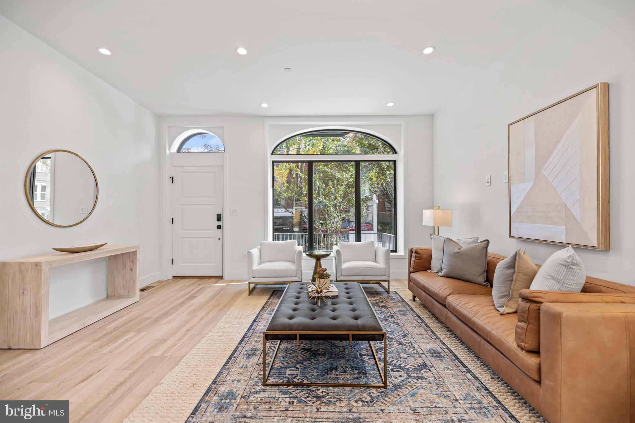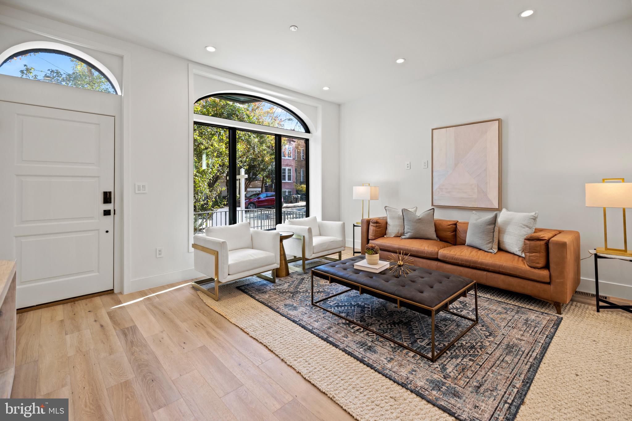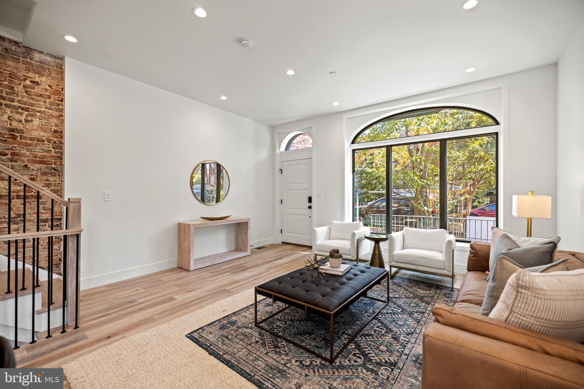New Construction Corner Home | 4 Bed | 4.5 Bath | 3,450 Sf | 2 Level Massive Rooftop Decks w/ Outdoor Kitchen | 2 Secure Parking Spaces | Home: Large Open Living Layout w/ 10 Ft Ceilings, Additional Sitting Room w/ Wet Bar & Wine/Beverage Fridge on 3rd Floor, Large Primary Suite w/ Large Walk-through Closet, Custom Arched Windows, New JeldWen Siteline Windows w/ Lots of Natural Light, Recessed LED Lighting Throughout, Lutron RA3 System for Main Level & Primary Suite, Built-In Polk Audio Speakers - 4 zones, Exposed Brick Accent Walls, Wide Plank White Oak Hardwood Flooring, Powder Bath on Main Level | Kitchen: Large Island w/ Storage & Seating for 4, Custom Cabinetry & Ample Storage, Marble White Fantasy Counters & Backsplash, Stainless Steel Appliances, Integrated Fisher & Paykel Refrigerator w/ Bottom Freezer, Signature Gas Range, Full-Size Paneled Signature Dishwasher | Baths: Frameless Glass Enclosed Double Shower w/ Body Sprays, Double Vanity w/ Storage, Mirrored Medicine Cabinets & Water Closet in Primary Suite, Vanities w/ Storage, Tiled Shower Walls & Flooring, Kohler Toilets | Connected Basement: Separate Front Entrance, Additional Family Room, Additional Bedroom & Full Bathroom, Front-Loading Washer & Dryer