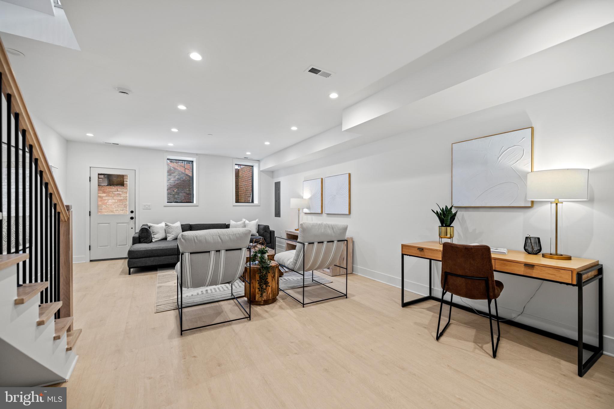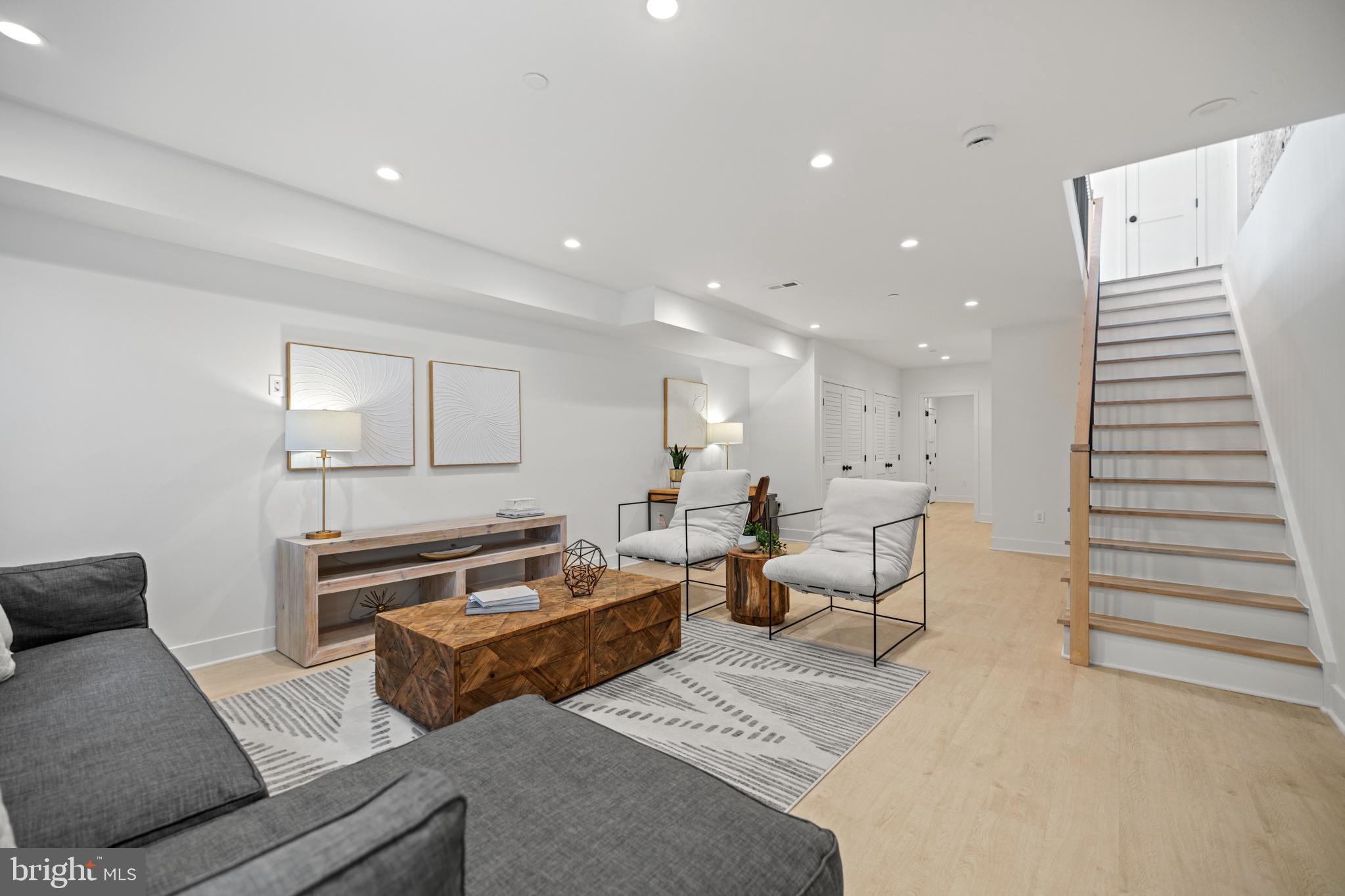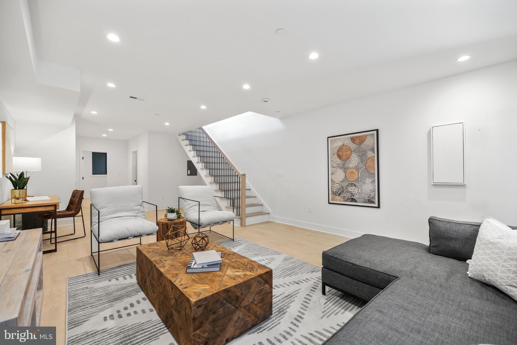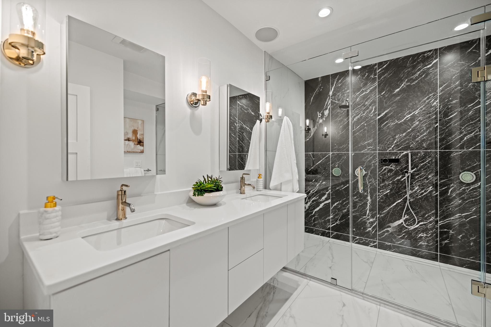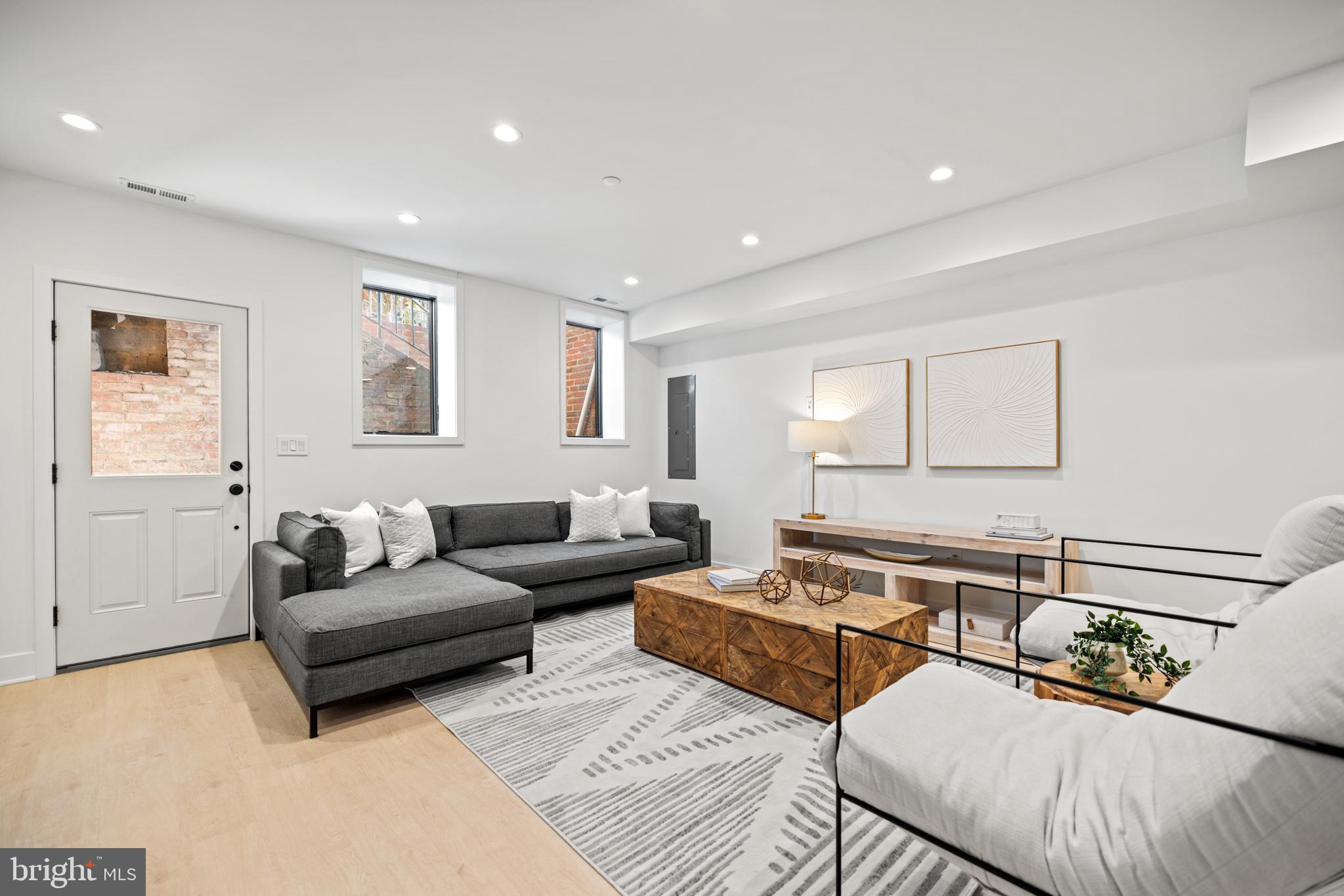 New Construction Corner Home | 4 Bed | 4.5 Bath | 3,450 Sf | 2 Level Massive Rooftop Decks w/ Outdoor Kitchen | 2 Secure Parking Spaces | Home: Large Open Living Layout w/ 10 Ft Ceilings, Additional Sitting Room w/ Wet Bar & Wine/Beverage Fridge on 3rd Floor, Large Primary Suite w/ Large Walk-through Closet, Custom Arched Windows, New JeldWen Siteline Windows w/ Lots of Natural Light, Recessed LED Lighting Throughout, Lutron RA3 System for Main Level & Primary Suite, Built-In Polk Audio Speakers - 4 zones, Exposed Brick Accent Walls, Wide Plank White Oak Hardwood Flooring, Powder Bath on Main Level | Kitchen: Large Island w/ Storage & Seating for 4, Custom Cabinetry & Ample Storage, Marble White Fantasy Counters & Backsplash, Stainless Steel Appliances, Integrated Fisher & Paykel Refrigerator w/ Bottom Freezer, Signature Gas Range, Full-Size Paneled Signature Dishwasher | Baths: Frameless Glass Enclosed Double Shower w/ Body Sprays, Double Vanity w/ Storage, Mirrored Medicine Cabinets & Water Closet in Primary Suite, Vanities w/ Storage, Tiled Shower Walls & Flooring, Kohler Toilets | Connected Basement: Separate Front Entrance, Additional Family Room, Additional Bedroom & Full Bathroom, Front-Loading Washer & Dryer