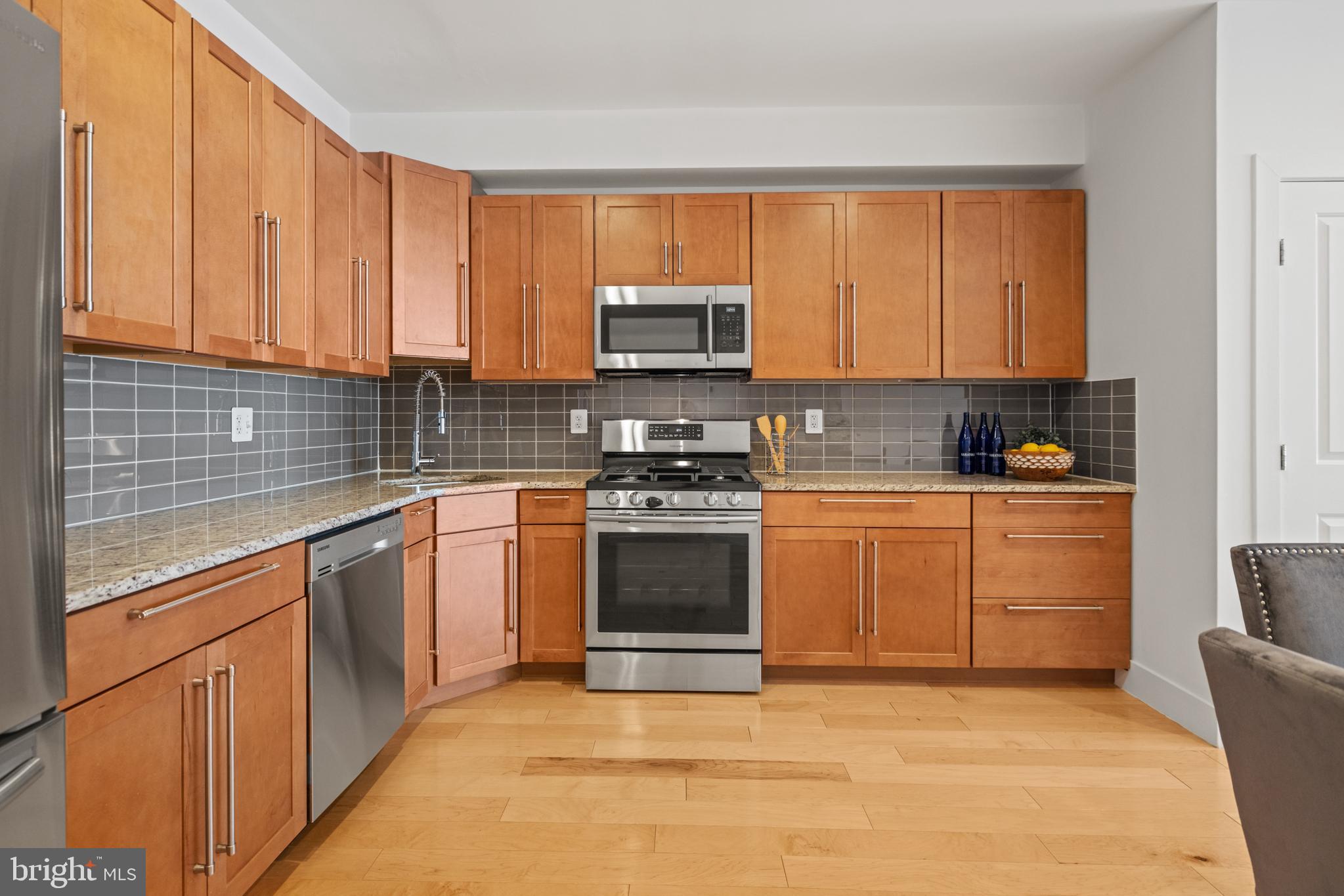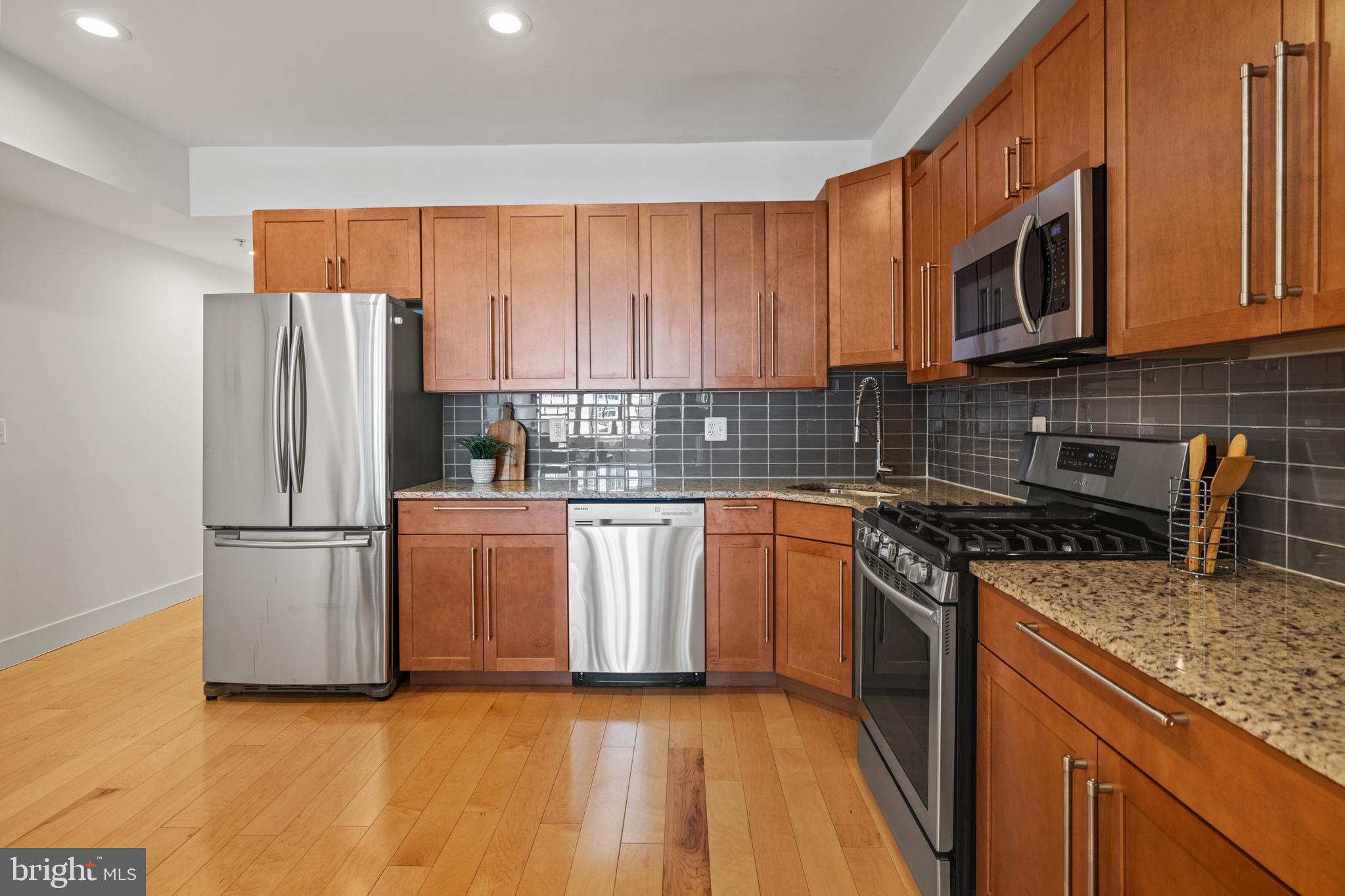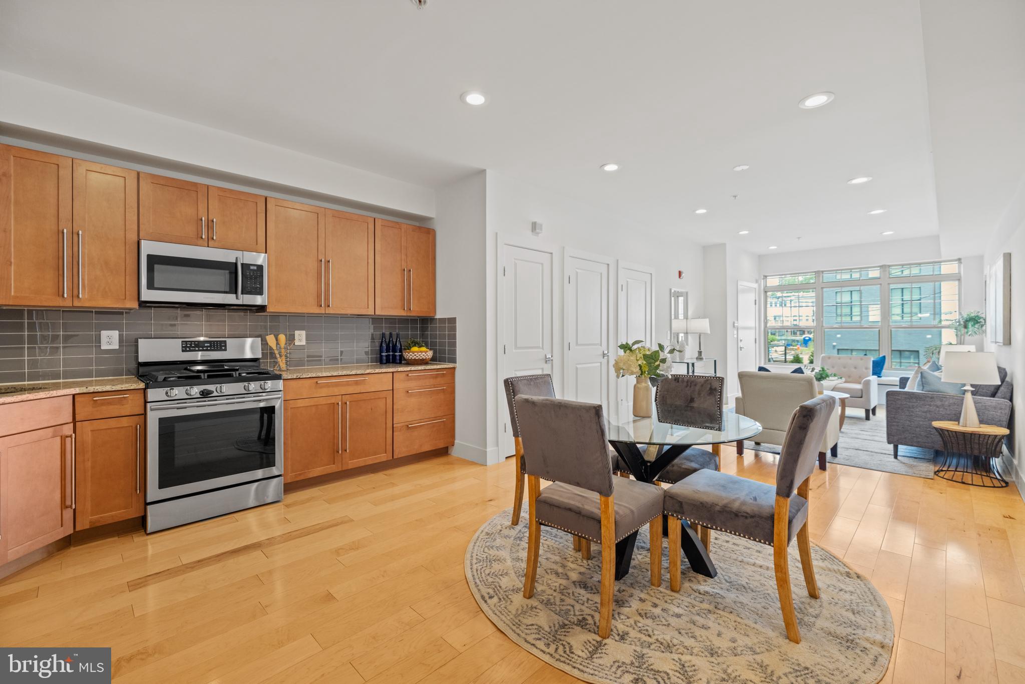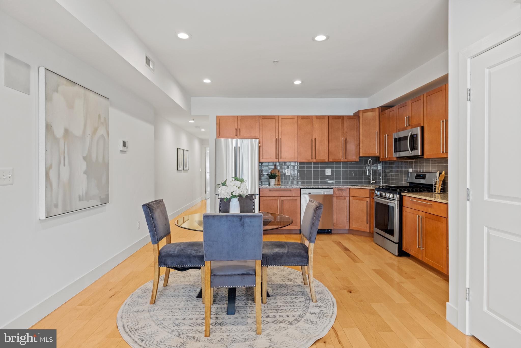 Welcoming to this shining Petworth Condo in the enclave of Brightwood Place. 2 Bed | 2 Bath | 1 Secure Parking l 1,050 Sf | Renovated in 2016, the low-rise building consists of 4 units maintaining a quiet and convenient lifestyle. Step inside and you are greeted by the sun-soaked living area, hardwood floors, and recessed lighting. The spacious living room seamlessly flows into the dining area and kitchen. Storage is abundant is this condo with a large pantry and separate coat closet. The kitchen has hardwood cabinetry, granite countertops, ceramic subway title backsplash, stainless steel appliances, and a gas range. The bedrooms are both generously sized, and the primary features a large walk-in closet. Both bathrooms have oversized soaking tubs and modern large format tiles. There is one assigned parking space with secure garage door entry and direct access to the unit.
