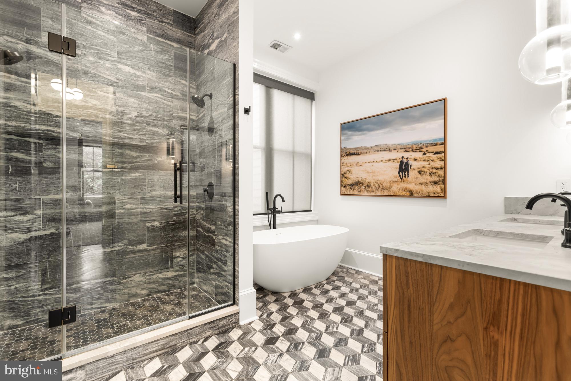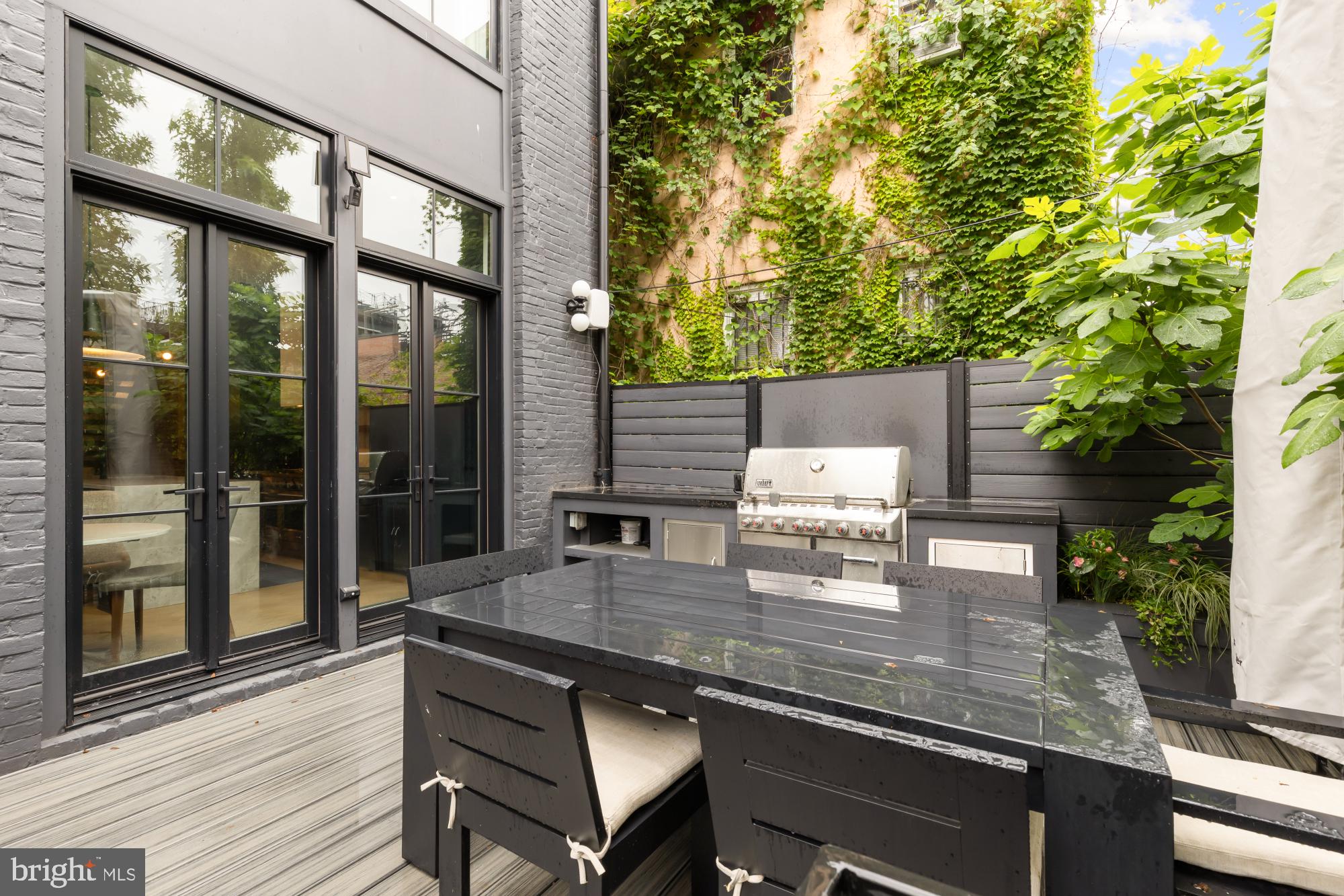 Outdoor living is just as impressive. Two expansive roof decks offer sweeping views of the city skyline and DC monuments, perfect for entertaining or unwinding. A rear deck with built-in grilling kitchen, a beautifully landscaped front entry, and two-car parking with an EV charger round out this rare offering.