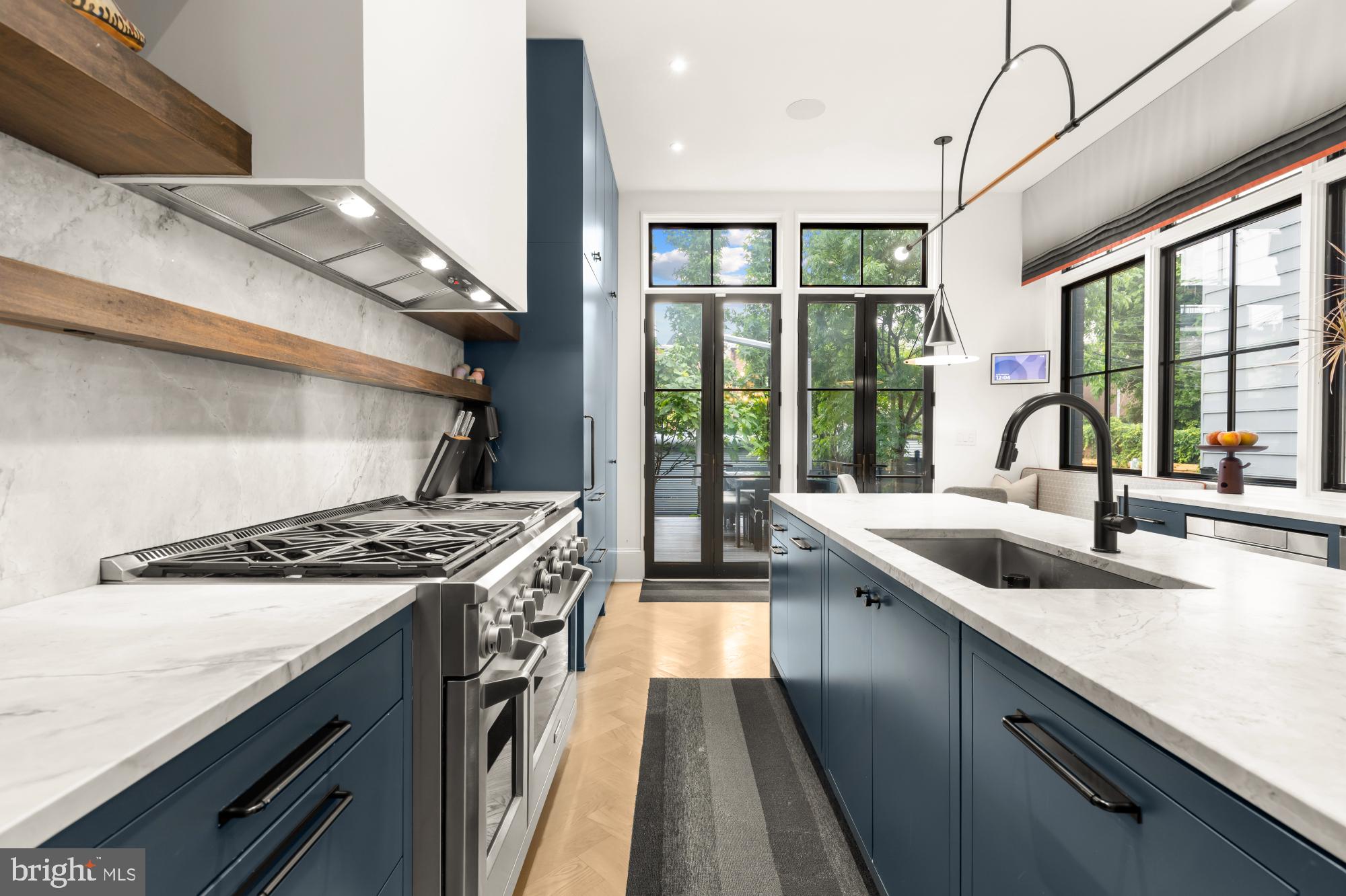 Step inside to find soaring ceilings, oversized windows, and sun-drenched herringbone hardwood floors. Historic details like exposed brick, marble fireplaces, and extensive millwork blend seamlessly with modern upgrades including designer lighting, a built-in speaker system, and custom window treatments. The heart of the home is a chef-grade kitchen designed to impress even the most discerning cook.